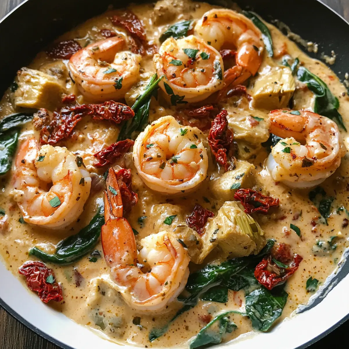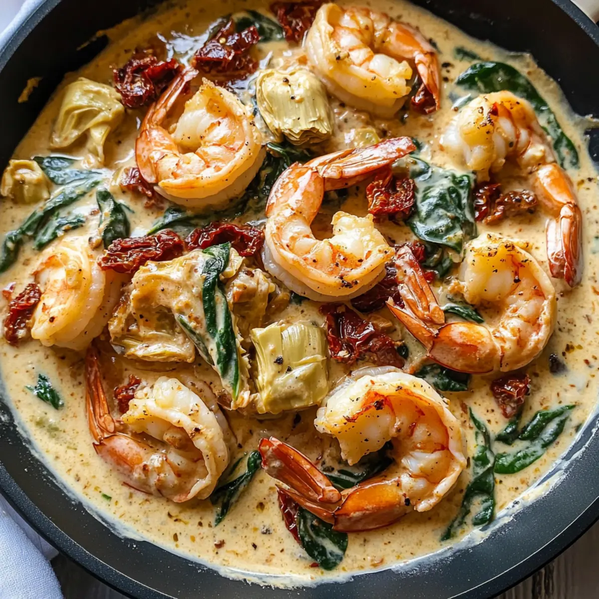 „Wussten Sie, dass Sie mit nur wenigen Zutaten ein köstliches italienisches Gericht zubereiten können, das die ganze Familie begeistert?“ In meinem neusten Rezept für Toskanische Garnele zeige ich Ihnen, wie Sie in nur 30 Minuten ein schmackhaftes, cremiges Abendessen zaubern. Dieses einfache One-Pan-Gericht vereint zarte Garnelen mit frischem Spinat, herzhaften Artischocken und aromatischen sonnengetrockneten Tomaten. Es ist nicht nur ein echter Genuss, sondern auch eine großartige Option für alle, die eine glutenfreie und kohlenhydratarme Ernährung bevorzugen. Sie werden erstaunt sein, wie schnell und mühelos sich dieses leckere Gericht zubereiten lässt. Bereit, Ihre Kochkünste auf das nächste Level zu heben? Lassen Sie uns in die Welt der italienischen Aromen eintauchen! Warum werden Sie dieses Rezept lieben? Einfachheit: Die Zubereitung ist kinderleicht und benötigt keine speziellen Kochkenntnisse – perfekt für die hektischen Wochentage! Köstlicher Geschmack: Die Kombination aus cremiger Soße, saftigen Garnelen und aromatischen Zutaten sorgt für ein Geschmackserlebnis, das Ihre Geschmacksknospen begeistern wird. Vielseitigkeit: Dieses Rezept lässt sich leicht anpassen: Fügen Sie zusätzliches Gemüse wie Paprika oder Zucchini hinzu oder verwenden Sie Kokoscreme für eine milchfreie Variante. Schnell & Zeitsparend: In nur 30 Minuten auf dem Tisch – ideal, wenn es abends schnell gehen muss, aber dennoch köstlich sein soll. Familienfreundlich: Dieses Gericht wird sicher alle am Tisch begeistern, egal ob Kinder oder Erwachsene. Wenn Sie nach weiteren unkomplizierten Rezepten suchen, schauen Sie sich auch meine leckeren Pastavariationen oder meine schnellen Low-Carb-Gerichte an! Zutaten für Toskanische Garnele • Bereiten Sie sich auf ein köstliches Gericht vor! Hier sind die Zutaten, die Sie benötigen: Für die Garnelen Garnelen – 1 Pfund große, rohe Garnelen, geschält und entdarmt. Hauptproteinquelle, kann auch mit vorgekochten Garnelen verwendet werden. Rauchige Paprika – 1 Teelöffel. Verleiht den Garnelen ein würzig-rauchiges Aroma. Italienische Gewürze – ½ Teelöffel (Thymian, Basilikum, Oregano, Rosmarin). Bringt frische Kräuternoten ins Spiel. Salz – ¼ Teelöffel, plus nach Geschmack. Verstärkt die Aromen des Gerichts. Schwarzer Pfeffer – ¼ Teelöffel, grob. Fügt eine angenehme Schärfe hinzu. Knoblauch – 5 Zehen, gehackt. Erhöht die Geschmacksintensität. Olivenöl – 2 Esslöffel. Ideal zum Anbraten der Garnelen; bei mittlerer Hitze verwenden. Für die Soße Sonnengetrocknete Tomaten – 4 oz, gehackt (ca. ¼ Tasse). Sorgt für eine süße und säuerliche Note. Artischockenherzen – 14 oz, abgetropft und gehackt (1 Dose oder ca. 1 Tasse). Fügt Textur und erdigen Geschmack hinzu. Frischer Spinat – 4 oz. Bringt eine gesunde, frische Note ins Gericht. Schlagsahne – 1 Tasse. Macht die Soße cremig; kann durch Crème fraîche ersetzt werden. Zusätzliche rauchige Paprika – ¼ Teelöffel für die Soße. Optimiert den Geschmack der Soße. Lassen Sie sich inspirieren und genießen Sie die Zubereitung dieser leckeren Toskanischen Garnele in nur 30 Minuten! Schritt-für-Schritt-Anleitung für Toskanische Garnele Schritt 1: Garnelen anbraten Würzen Sie die Garnelen mit rauchiger Paprika, italienischen Gewürzen, Salz und schwarzem Pfeffer. Erhitzen Sie 2 Esslöffel Olivenöl in einer großen Pfanne bei mittlerer bis hoher Hitze. Geben Sie die Garnelen und den gehackten Knoblauch in die Pfanne und braten Sie sie ca. 2 Minuten pro Seite an, bis die Garnelen rosa und opak sind. Achten Sie darauf, die Pfanne nicht zu überfüllen, und stellen Sie die Garnelen danach beiseite. Schritt 2: Toskanische Soße zubereiten Verwenden Sie die gleiche Pfanne, um an den köstlichen Aromen festzuhalten. Geben Sie die gehackten sonnengetrockneten Tomaten und Artischockenherzen hinzu und braten Sie sie 1 Minute an, wobei Sie gelegentlich umrühren. Fügen Sie den frischen Spinat hinzu und kochen Sie weiter, bis er sich zusammengezogen hat, was etwa 2 Minuten dauert. Schritt 3: Sahne hinzufügen Gießen Sie 1 Tasse Schlagsahne und ¼ Teelöffel zusätzliche rauchige Paprika in die Pfanne. Lassen Sie die Mischung aufkochen und rühren Sie für etwa 1 Minute, damit sich die Aromen richtig vermischen. Abschmecken und gegebenenfalls mit zusätzlichem Salz würzen, um die Cremigkeit der Toskanischen Garnele zu perfektionieren. Schritt 4: Garnelen kombinieren Fügen Sie die angebratenen Garnelen zurück in die Pfanne und löffeln Sie die Sauce großzügig über die Garnelen. Lassen Sie alles zusammen für 2 Minuten köcheln, damit die Garnelen durchwärmt werden und die Aromen sich gut verbinden. Achten Sie darauf, die Garnelen nicht zu lange zu erhitzen, um ihre Zartheit zu bewahren. Tipps zur Vorbereitung der Toskanischen Garnele Diese Toskanische Garnele ist perfekt für eine effiziente Meal Prep! Sie können die Garnelen sowie das Gemüse bis zu 24 Stunden im Voraus vorbereiten. Würzen Sie die Garnelen mit rauchiger Paprika und den italienischen Gewürzen, und stellen Sie sie in den Kühlschrank, um die Aromen zu intensivieren. Auch das Anbraten der Garnelen kann bereits am Vorabend erfolgen – einfach gut abdecken und bei Bedarf aufwärmen. Achten Sie darauf, die Soße frisch zuzubereiten, da sie am besten direkt nach der Zubereitung schmeckt. Wenn Sie bereit sind zu servieren, kombinieren Sie die zubereiteten Garnelen mit der frisch gefertigten Soße und köcheln Sie für 2 Minuten, um alles zusammenzubringen – so genießen Sie ein schnelles, köstliches Abendessen mit minimalem Aufwand! Was passt zu Toskanischer Garnele? Eine köstliche Begleitung macht Ihr schnelles Abendessen unvergesslich und rundet das Geschmackserlebnis ab. Zucchini-Nudeln: Diese glutenfreie Alternative ist leicht und passt hervorragend zur cremigen Soße, die die Garnelen umhüllt. Ein leichtes Gericht, das Sie zufrieden stellt! Knoblauchbrot: Das knusprige, goldbraune 