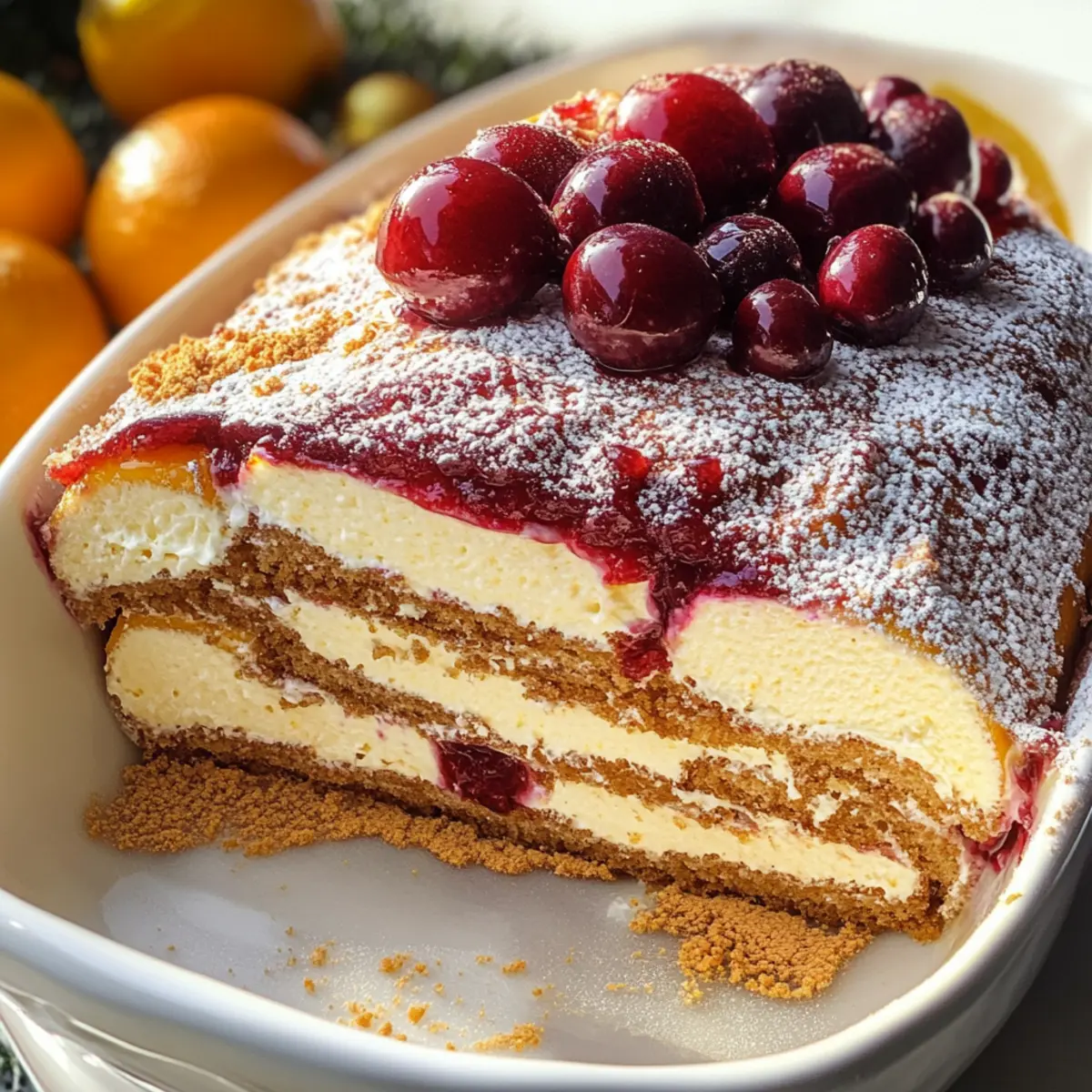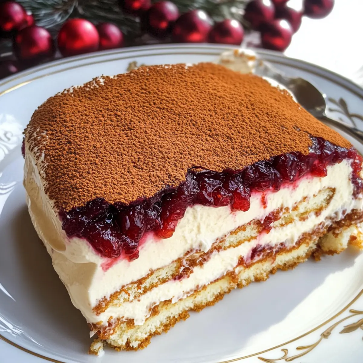 Während ich durch den belebten Weihnachtsmarkt schlenderte, fiel mein Blick auf die bunten Stände, die frische Früchte und festliche Leckereien präsentierten. Besonders die leuchtenden Cranberries und die saftigen Orangen zogen mich magisch an. In diesem Moment wusste ich, dass ich ein ganz besonderes Dessert kreieren wollte: ein Cranberry und Orange Tiramisu. Diese fruchtige Abwandlung des traditionellen italienischen Tiramisu verleiht jedem Weihnachtsfest oder Feiertag eine erfrischende Note. Das cremige Cranberry-Mascarpone und die mit Orangensaft getränkten Löffelbiskuits sind nicht nur schnell zuzubereiten, sondern auch ein echter Hingucker auf dem Tisch. Kombiniert mit einer glänzenden Cranberry-Sauce ist dieses Rezept der perfekte Weg, um ein Stück italienische Tradition mit einer fröhlichen, festlichen Note zu feiern. Seid ihr bereit, euren Gästen etwas Außergewöhnliches zu servieren? Warum ist dieses Tiramisu besonders? Einzigartig und fruchtig: Diese Abwandlung des traditionellen italienischen Tiramisu kombiniert die saftige Frische von Cranberries und Orangen, was es ideal für festliche Anlässe macht. Einfache Zubereitung: Mit nur wenigen Schritten und leicht verständlichen Anweisungen gelingt dieses Dessert mühelos für jeden Hobbykoch. Perfekte Textur: Die cremige Mascarpone-Füllung harmoniert wunderbar mit den weich-soakierenden Löffelbiskuits und der glänzenden Cranberry-Sauce. Beeindruckende Präsentation: Dieses Tiramisu wird zur Attraktion auf jedem festlichen Tisch und sorgt für bewundernde Blicke bei euren Gästen. Vielseitig anpassbar: Bestimmt die Süße nach eurem Geschmack und experimentiert mit verschiedenen Früchten oder Aromen – eine köstliche Möglichkeit, euer Tiramisu individuell zu gestalten. Ideale Abschlussnote: Dieses Dessert rundet jede Feier perfekt ab und bleibt garantiert in Erinnerung, selbst bei euren anspruchsvollsten Gästen. Cranberry und Orange Tiramisu Zutaten Für die Füllung • Cranberries – Frisch oder gefroren; sie bieten die perfekte Balance aus Frische und Säure für dein traditionelles italienisches Tiramisu. • Wasser – Notwendig, um die Cranberries zu garen; hier ist kein Ersatz nötig. • Zucker – Süßt den Cranberrysaft und die Mascarpone-Füllung; kann durch Honig oder Agavendicksaft ersetzt werden. • Orangenschale – Verleiht einen hellen, zitrusfrischen Geschmack; kann auch durch Zitronenschale ersetzt werden. • Orangensaft – Frisch gepresst für beste Ergebnisse; Bottled Juice kann in Notfällen verwendet werden, hat aber nicht die gleiche Frische. • Schlagsahne – Für die cremige Füllung; kann durch Kokoscreme für eine milchfreie Option ersetzt werden. • Mascarpone-Käse – Basiskomponente der Füllung; alternativ kann Ricotta- oder Frischkäse verwendet werden, wenn Mascarpone nicht verfügbar ist. Für die Lagen • Löffelbiskuits – Wichtig für die Schichtung; sie saugen den Saft auf; sie können selbst gemacht oder gekauft werden. • Likör (optional) – Triple Sec oder dunkler Rum für zusätzlichen Geschmack; kann weggelassen werden, wenn ein alkoholfreies Rezept gewünscht ist. Für die Garnitur • Zucker-Cranberries – Zum Dekorieren; können durch normale Cranberries ersetzt oder weggelassen werden. • Rosmarin – Optionaler dekorativer Akzent; frische Minze kann als Alternative verwendet werden. Genießt dieses köstliche Cranberry und Orange Tiramisu, das mit einer festlichen Note euer traditionelles italienisches Tiramisu neu interpretiert! Schritt-für-Schritt-Anleitung für Cranberry und Orange Tiramisu Schritt 1: Bereite den Cranberrysaft vor Koche die Cranberries in einem Topf mit Wasser für etwa 20 Minuten, bis sie platzen und weich sind. Presse anschließend die Mischung durch ein feines Sieb, um den Saft von der festen Masse zu trennen. Füge den Zucker und die Orangenschale hinzu und lass die Mischung auf Raumtemperatur abkühlen. Schritt 2: Bereite den Orangensaft vor Schäle die Orangen und püriere das Fruchtfleisch in einem Mixer, bis eine glatte Konsistenz entsteht. Mische den frisch gepressten Orangensaft dann mit dem abgekühlten Cranberrysaft, um eine harmonische Geschmackskomponente für dein Cranberry und Orange Tiramisu zu schaffen. Schritt 3: Bereite die Mascarponefüllung vor Schlage die Schlagsahne in einer großen Schüssel auf, bis sich steife Spitzen bilden. In einer separaten Schüssel vermischst du den Mascarpone-Käse mit dem Zucker, bis eine gleichmäßige und cremige Masse entsteht. Füge vorsichtig die geschlagene Sahne hinzu, indem du sie sanft unterhebst, und mische anschließend langsam den Cranberry-Orangen-Saft unter. Schritt 4: Baue das Tiramisu zusammen Tauche die Löffelbiskuits kurz in den Orangensaft – etwa 10 Sekunden pro Seite – und lege sie dann in eine geeignete Form. Verteile die Hälfte der Mascarponefüllung gleichmäßig über die Biskuits, gefolgt von einer weiteren Schicht getränkter Löffelbiskuits. Bedecke die oberste Schicht mit der verbleibenden Mascarponefüllung und glätte sie. Schritt 5: Bereite die Cranberrysoße vor Vermische die Zutaten für die Cranberrysoße in einem kleinen Topf und lasse die Mischung auf mittlerer Hitze köcheln. Rühre sie regelmäßig um, bis die Cranberries zerplatzen und die Soße schön eingedickt ist. Püriere die Mischung anschließend, bis sie glatt ist, und lass sie vollständig abkühlen. Schritt 6: Vollende das Tiramisu Gieße die abgekühlte Cranberrysoße gleichmäßig über das gekühlte Cranberry und Orange Tiramisu. Dekoriere das Dessert mit zuckerhaltigen Cranberries und frischen Orangenstücken für einen festlichen Touch und stelle es vor dem Servieren für mindestens 6 Stunden oder über Nacht in den Kühlschrank, damit es gut durchzieht. Was passt zu Cranberry und Orange Tiramisu? Diese fruchtige Leckerei ist der perfekte Abschluss für dein festliches Menü und regt die Vorfreude auf die Feierlichkeiten an. Cremige Vanilleeis: Die Kühle und Süß