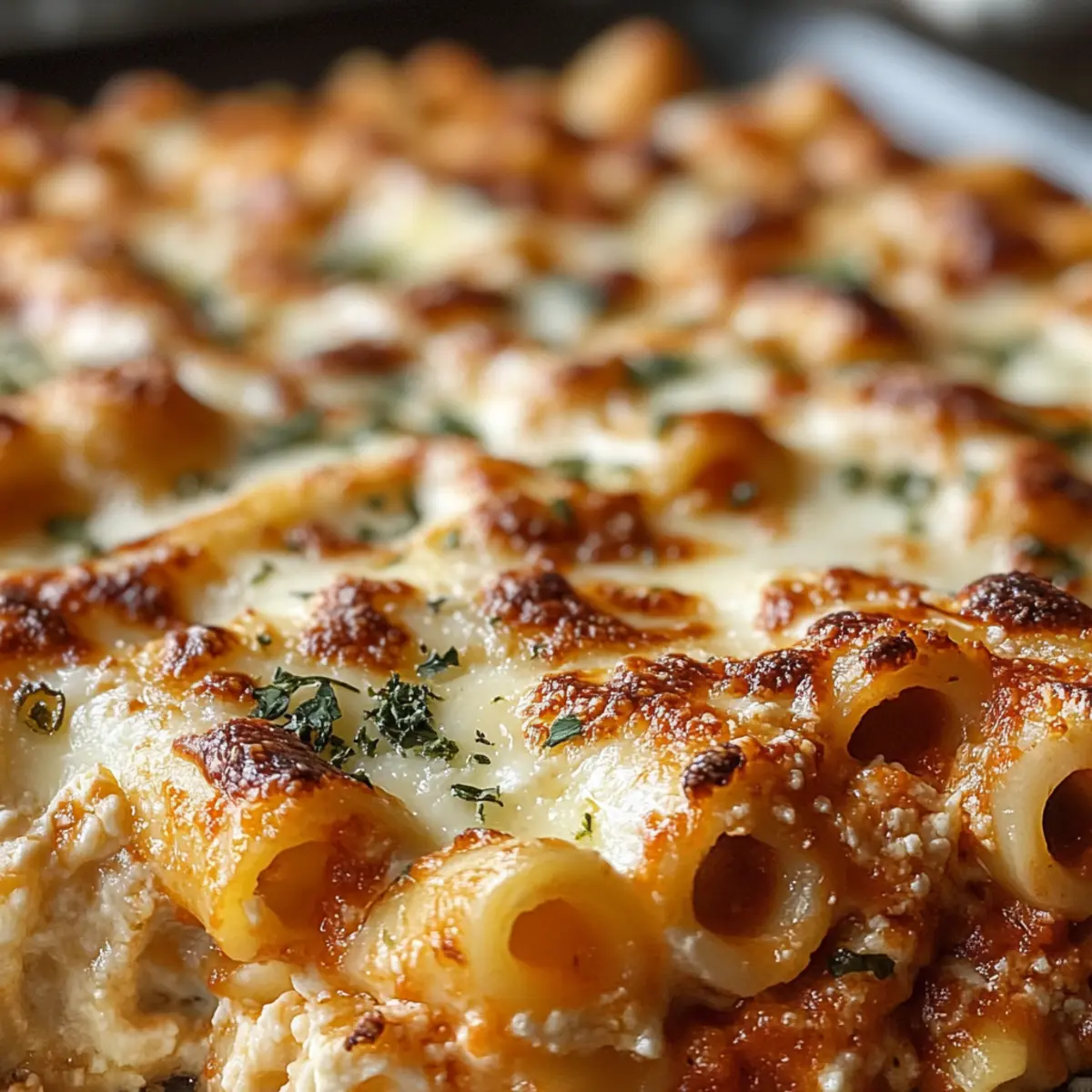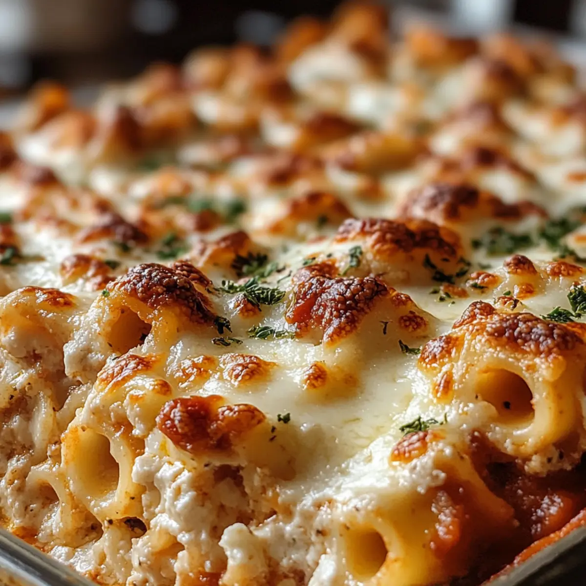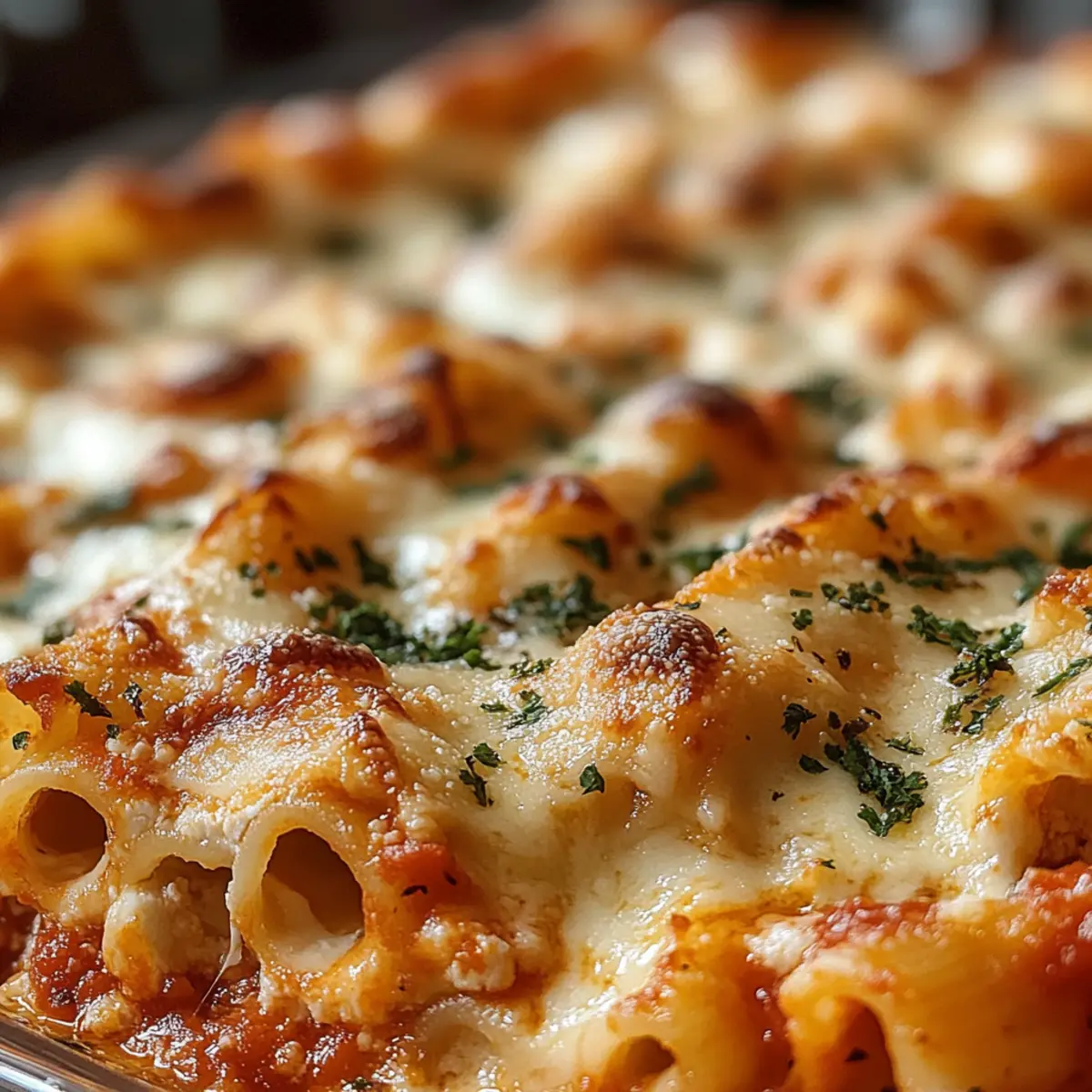 Es ist einer dieser Abende, an denen ich einfach nur Lust auf etwas Herzhaftes habe. Was könnte besser sein als eine überbackene Ziti, die in einer Vielzahl von köstlichen Geschmäckern schwelgt? Mein Rezept für Million Dollar Baked Ziti ist nicht nur ein Genuss für die Sinne, sondern auch eine hervorragende Lösung für hektische Wochentage. Dieses italienisch-amerikansiche Comfort Food bringt die ganze Familie zusammen und sorgt mit seinem cremigen Käse und der aromatischen Tomatensoße für Begeisterung am Tisch. Zudem ist es unglaublich vielseitig: Du kannst die Ziti ganz einfach glutenfrei zubereiten oder mit einer anderen Käsesorte experimentieren. Neugierig, wie du dieses herzhafte Gericht in der eigenen Küche zaubern kannst? Lass uns gemeinsam in die Schritte eintauchen! Warum wirst du dieses Rezept lieben? Einfachheit: Die Zubereitung ist kinderleicht und erfordert keine speziellen Kochkünste. Vielseitig: Du kannst die Zutaten nach Belieben anpassen, sei es glutenfreie Pasta oder verschiedene Käsesorten. Herzhafter Genuss: Jede Schicht ist vollgepackt mit würzigem Käse und aromatischer Tomatensoße, die jeden Gaumen erfreut. Schnelle Zubereitung: Ideal für hektische Wochentage, da dieses Gericht in weniger als einer Stunde fertig ist. Familienfreundlich: Ein echter Publikumsliebling – perfekt für große Zusammenkünfte oder ein gemütliches Familienessen. Wenn du weitere köstliche Ideen suchst, schau dir auch unser Rezept für köstliche Lasagne an! Überbackene Ziti Zutaten • Für die Pasta Ziti-Nudeln – Die Basis des Gerichts; koche sie al dente, damit sie beim Backen die perfekte Textur haben. • Für die Sauce Olivenöl – Zum Anbraten; du kannst stattdessen auch Pflanzenöl verwenden. Zwiebeln – Fügen Süße und Tiefe hinzu; verwende Schalotten als Alternative. Knoblauch – Verstärkt das Aroma; frischer Knoblauch ist ideal, aber Knoblauchpulver geht in der Not auch. Rinderhackfleisch/Wurst – Sorgt für Protein und Reichtum; ersetze es durch Putenfleisch oder pflanzliches Fleisch für eine leichtere Option. Marinara-Sauce – Ergänzt die Nudeln mit ihren säuerlichen Noten; wähle eine hochwertige gekaufte oder mach eine eigene. Italienische Gewürzmischung – Bringt aromatische Nuancen; frische oder getrocknete Kräuter sind ebenfalls alternativ einsetzbar. • Für die Käse-Mischung Ricotta-Käse – Schafft Cremigkeit und bindet die Zutaten; kann durch Quark oder Crème fraîche ersetzt werden. Ei – Dient als Binder; für eine vegane Variante kannst du es weglassen oder durch ein Flachs-Ei ersetzen. Parmesan-Käse – Fügt einen scharfen, salzigen Geschmack hinzu; geriebener Pecorino Romano ist ebenfalls möglich. Mozzarella-Käse – Sorgt für eine cremige Textur; frischer Mozzarella verleiht dem Gericht Authentizität oder wähle eine pflanzliche Käsealternative. • Für das Würzen Salz & Pfeffer – Unverzichtbar zum Abschmecken; je nach Vorliebe anpassen. Mit diesen Zutaten bist du bereit, deine eigene überbackene Ziti zu zaubern, die sowohl als gemütliches Abendessen als auch für festliche Anlässe geeignet ist! Schritt-für-Schritt-Anleitung für Überbackene Ziti Step 1: Pasta vorbereiten Einen großen Topf mit gesalzenem Wasser zum Kochen bringen. Die Ziti-Nudeln hinzugeben und etwa 8 Minuten lang kochen, bis sie al dente sind. Anschließend die Nudeln abgießen und beiseite stellen. Achte darauf, dass die Nudeln nicht zu weich werden, da sie beim Überbacken noch weiter garen. Step 2: Fleisch anbraten In einer großen Pfanne bei mittlerer Hitze etwas Olivenöl erhitzen. Zwiebel und Knoblauch hinzufügen und sie etwa 3-4 Minuten anbraten, bis sie weich und glasig sind. Dann das Rinderhackfleisch oder die Wurst einfüllen und braten, bis das Fleisch gut durchgegart und leicht braun ist. Marinara-Sauce und italienische Gewürze unterrühren und die Mischung 5 Minuten köcheln lassen, damit die Aromen gut durchziehen. Step 3: Käsemischung vorbereiten In einer großen Schüssel Ricotta-Käse, das Ei, Parmesan sowie Salz und Pfeffer gründlich miteinander vermengen. Rühre, bis die Mischung schön cremig und homogen ist. Diese Käsemischung wird in den Schichten der Überbackenen Ziti eine wichtige Rolle spielen, indem sie für cremige Textur sorgt. Step 4: Zutaten schichten Eine gefettete Auflaufform bereitstellen und die erste Schicht vorbereiten. Die Hälfte der gekochten Ziti-Nudeln gleichmäßig in der Form verteilen, gefolgt von der Hälfte der Ricotta-Mischung und der Hälfte des Mozzarellas. Anschließend die Hälfte der Fleischsauce darüber geben. Diesen Schichtvorgang wiederholen und die restlichen Zutaten darauflegen. Step 5: Backen Den Ofen auf 190°C vorheizen. Die Auflaufform mit Alufolie abdecken und sie für 20 Minuten in den vorgeheizten Ofen stellen. Nach dieser Zeit die Folie abnehmen und die Überbackene Ziti weitere 10-15 Minuten backen, bis der Käse schön blubbernd und goldbraun ist. Lass das Gericht nach dem Backen 5 Minuten ruhen, bevor du es servierst. Was passt gut zu Überbackene Ziti? Es ist immer schön, ein vollwertiges Menü zu kreieren, das die Aromen der Überbackenen Ziti perfekt ergänzt. Frischer Salat: Ein knackiger grüner Salat mit leichtem Dressing bringt Frische und sorgt für einen herrlichen Kontrast zur cremigen Pasta. Knoblauchbrot: Röstdünne Baguettescheiben, mit Knoblauchbutter bestrichen, sind perfekt zum Eintunken in die köstliche Sauce der Ziti. Eine Kombination, die jeder liebt! Gemüsebeilage: Gedünsteter Brokkoli oder grüne Bohnen bieten einen nahrhaften und leichten Ausgleich; sie bereichern die Mahlzeit mit Vitaminen und einer wunderbaren Farbe. Rotwein: Ein kräftiger Chianti oder ein anderer italienischer Rotwein bringt die Aromen des Gerichts optimal zur Geltung. Diese Kombination wird deine Gäste begeistern. Dessert: Ein leichtes Tiramisu oder Panna Cotta ist der perfekte Abschluss eines italienischen Abends. Cremig und süß, perfekt nach dem herzhaften Haup
