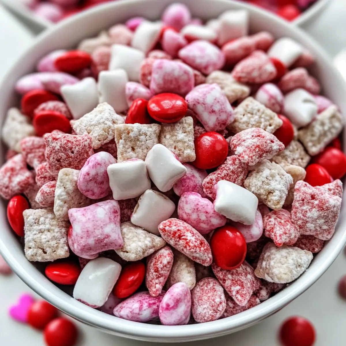 Als ich neulich im Supermarkt stand und die bunten Regale betrachtete, fiel mir ein besonderer Leckerbissen ins Auge: Valentinstag Hundeleckerlis. Diese einfache und köstliche Snack-Idee, das Easy Valentine’s Day Puppy Chow, wird nicht nur meine nächste Feier zum Strahlen bringen, sondern ist auch ein perfektes Geschenk für Freunde und Familie. Wenn du eine schnelle und unterhaltsame Möglichkeit suchst, den Valentinstag zu feiern, dann ist dieses Rezept genau das richtige – schnell zubereitet und ein wahrer Publikumsliebling! Mit der knusprigen Textur des Chex-Getreides und den festlichen Farben vereint es alles, was man für eine gelungene Feier braucht. Bist du bereit, deine eigene süße Snack-Kreation zu zaubern und die Herzen deiner Liebsten zu erobern? Warum wirst du dieses Rezept lieben? Einfachheit, die begeistert: Mit nur wenigen Zutaten und ohne Backen ist es perfekt für alle, die schnelle Snacks lieben. Festlicher Genuss: Die lebhaften Farben und süßen Aromen bringen Freude zu jedem Anlass – sei es eine Party oder ein Überraschungsbesuch. Vielfalt, die inspiriert: Du kannst die Zutaten nach deinem Geschmack variieren, z. B. durch den Austausch des Chex-Getreides oder der M&Ms. So wird jede Variante ein einzigartiges Erlebnis! Schöner Zusammenbau: Einfaches Schütteln in Beuteln ermöglicht eine stressfreie Zubereitung und minimalen Abwasch. Für jeden Anlass: Dieses Rezept eignet sich nicht nur für den Valentinstag, sondern auch für viele andere Feiern. Sorge dafür, dass deine Gäste mit dem Easy Valentine’s Day Puppy Chow begeistert sind – ein Hit für kleine und große Naschkatzen! Valentinstag Hundeleckerlis Zutaten • Für die Basis: Chex Getreide – sorgt für die knusprige Basis der Hundeleckerlis; verwende jede beliebige Sorte wie Reis- oder Mais-Chex. Erdbeer-Kuchenteigmischung – verleiht Süße und fruchtigen Geschmack; kann durch Vanille-Kuchenteigmischung ersetzt werden, wenn du eine neutralere Note bevorzugst. Puderzucker – bedeckt das Getreide und sorgt für einen süßen Überzug. • Für die Schokoladeneinheit: Rote Candy Melts – sorgen für festliche Farbe und Geschmack; weiße Schokolade kann verwendet werden, wenn rote Melts nicht erhältlich sind. Weiße Candy Melts – bieten einen schönen Kontrast zu den roten und bringen einen süßen Geschmack hinzu. • Für den zusätzlichen Crunch: Valentinstag M&Ms – bringen Farbe und Schokoladenstückchen ins Spiel; saisonale Farben können durch herkömmliche M&Ms ersetzt werden. Valentinstag Streusel – dienen als dekoratives Element für einen festlichen Touch; ersetze sie durch andere thematische Streusel, wenn nötig. Genieße die Zubereitung dieser köstlichen Valentinstag Hundeleckerlis und verwandle deinen Valentinstag in einen süßen und festlichen Genuss! Schritt-für-Schritt-Anleitung für Valentinstag Hundeleckerlis Step 1: Chex Getreide vorbereiten Teile 6 Tassen Chex-Getreide in zwei mittlere Schüsseln auf, indem du jeweils 3 Tassen in jede Schüssel gibst. Achte darauf, dass das Getreide gleichmäßig verteilt wird, für ein optimales Überziehen. Dies ist die Grundlage für deine Valentinstag Hundeleckerlis. Step 2: Zucker-Mischung herstellen In einer separaten Schüssel vermische 3/4 Tasse Erdbeer-Kuchenteigmischung mit 3/4 Tasse Puderzucker. Rühre gut um, bis die Mischung gleichmäßig ist und keine Klumpen mehr enthält. Diese Mischung wird verwendet, um das Getreide schön süß zu machen. Step 3: Rote Candy Melts schmelzen Erhitze 1 Tasse rote Candy Melts in einer mikrowellengeeigneten Schüssel bei niedriger Leistung. Mache dies in 30-Sekunden-Intervallen und rühre zwischen jedem Intervall gut um, bis die Candy Melts vollständig geschmolzen und glatt sind. Achte darauf, dass sie nicht anbrennen. Step 4: Ersten Chex überziehen Gieße die geschmolzenen roten Candy Melts über eine Schüssel Chex-Getreide und rühre schnell um. Stelle sicher, dass alles gleichmäßig überzogen ist und kein trockenes Getreide übrig bleibt. Die knallige Farbe wird deine Valentinstag Hundeleckerlis zum Strahlen bringen. Step 5: Mischen mit Zucker Übertrage das überzogene Chex in einen Ziplock-Beutel, füge 3/4 Tasse der Zucker-Mischung hinzu, schließe den Beutel und schüttle kräftig, bis alles gut bedeckt ist. Verteile das gut überzogene Getreide auf ein mit Backpapier ausgelegtes Blech, um es abkühlen zu lassen. Step 6: Weiße Candy Melts schmelzen Wiederhole den Schmelzprozess mit der weißen Candy Melt, indem du sie in 30-Sekunden-Intervallen erhitzt und gut umrührst. Achte wiederum darauf, dass sie vollständig geschmolzen sind, bevor du mit der nächsten Zutat fortfährst. Step 7: Zweiten Chex überziehen Gieße die geschmolzenen weißen Candy Melts über die zweite Schüssel Chex-Getreide. Rühre vorsichtig um, bis jedes Stück gut überzogen ist und die Farben der Valentinstag Hundeleckerlis harmonieren. Step 8: Mit Zucker mischen Übertrage das weiße überzogene Chex in einen weiteren Ziplock-Beutel, füge die restliche Zucker-Mischung hinzu und schüttle erneut, bis alles gleichmäßig bedeckt ist. Breite das Mix auf Backpapier aus zum Abkühlen und um ein Festkleid für deine Leckereien zu schaffen. Step 9: Mischen und dekorieren Sobald beide Mischungen abgekühlt sind, kombiniere sie in einer großen Schüssel. Füge 1 Tasse Valentinstags-M&Ms und 2 Esslöffel Valentinstags-Streusel hinzu. Rühre alles vorsichtig zusammen, um eine bunte und festliche Mischung zu erhalten, die perfekt für Partys geeignet ist. Expert Tips für Valentinstag Hundeleckerlis Temperaturkontrolle: Achte darauf, die Candy Melts in kurzen Intervallen zu schmelzen, um ein Anbrennen zu vermeiden und eine glatte Konsistenz zu erhalten. Puderzucker gleichmäßig verteilen: Wenn du das überzogene Chex in den Beutel gibst, stelle sicher, dass es gut bedeckt ist, um ein gleichmäßiges Geschmackserlebnis zu erreichen. Kreative Variationen: Du kannst verschiedene Geschmacksrichtungen von