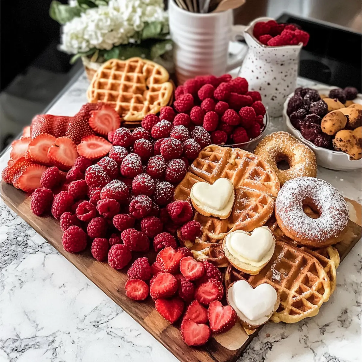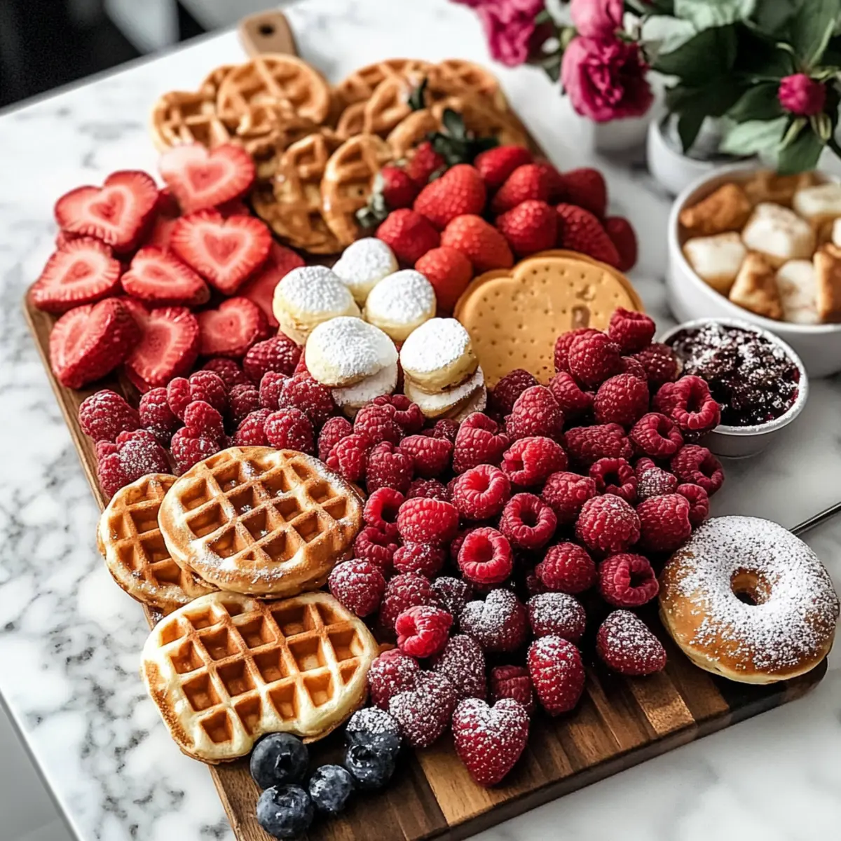 Überrasche deine Liebsten mit einem herzhaften Valentinstag Waffel Frühstücksbrett für einen unvergesslichen Morgen.