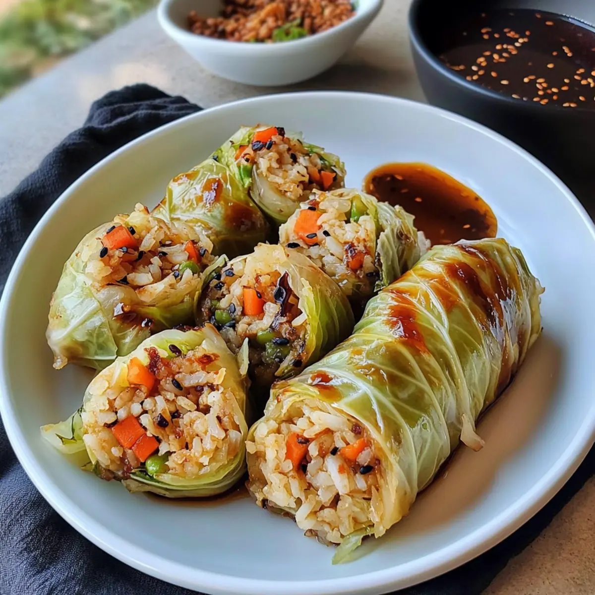 • Füllungsalternativen: Tausche Sushi-Reis gegen Quinoa oder Hirse aus, um deine Kohlrouladen noch nährstoffreicher zu gestalten. Beide Varianten bieten eine großartige Textur und sind ebenso sättigend.