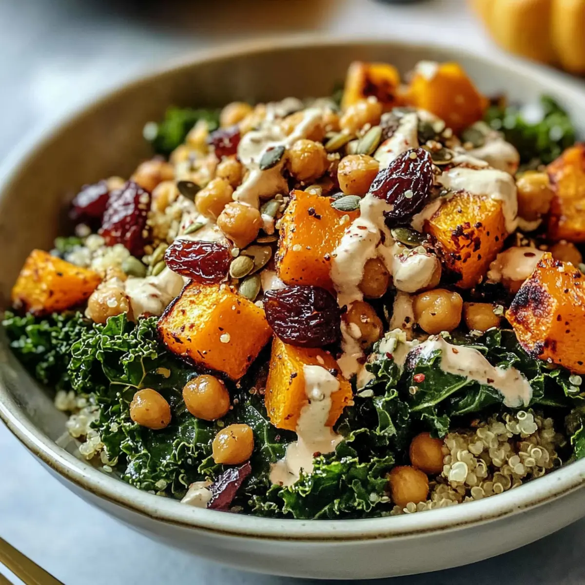 Vielseitigkeit: Der vegane geröstete Herbsternte-Salat ist nicht nur saisonal, sondern auch anpassungsfähig. Einfachheit: Die Zubereitung erfordert keine fortgeschrittenen Kochkünste und kann in weniger als 30 Minuten zum Leben erweckt werden. Aromenvielfalt: Mit süßem Kürbis, knusprigen Kichererbsen und cremigem Tahini-Dressing entsteht eine Explosion von Geschmäckern. Gesundheit: Dieser Salat ist reich an Nährstoffen, ideales Gericht für gesundheitsbewusste Genießer. Haltbarkeit: Die einzelnen Komponenten können im Voraus zubereitet und mehrere Tage gelagert werden, perfekt für Meal Prep. Holt euch die besten Zutaten vom Bauernmarkt und genießt diese köstliche Herbstkreation!