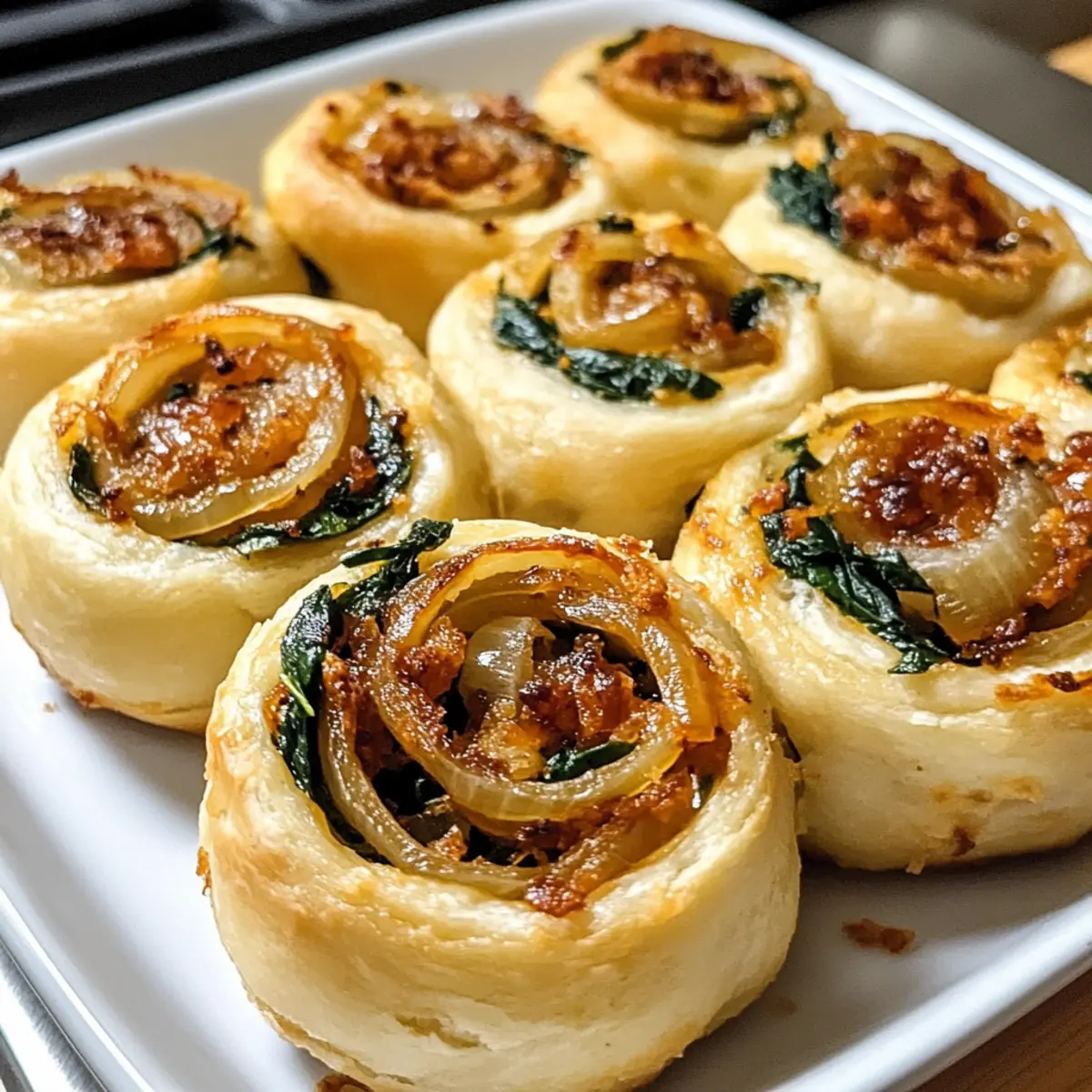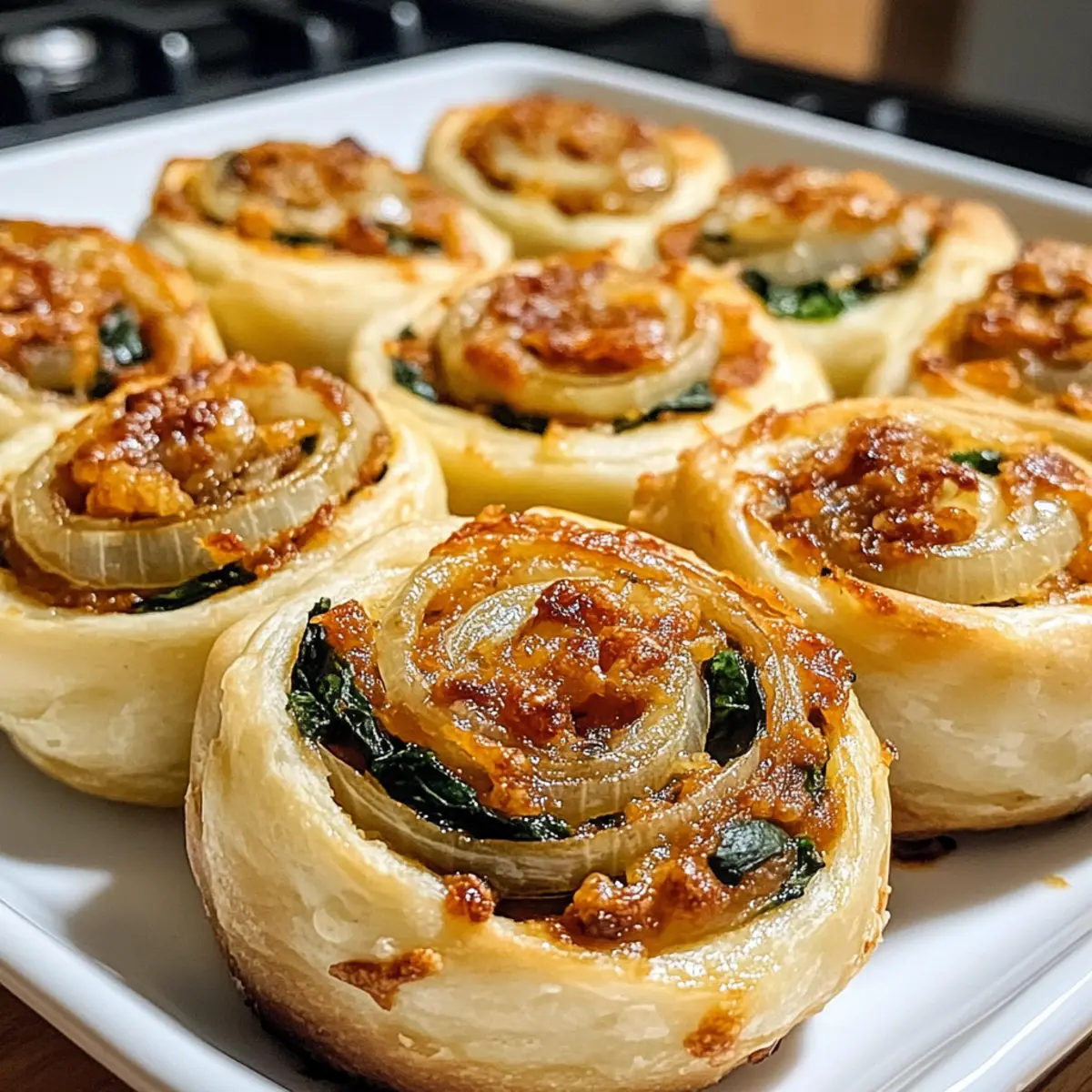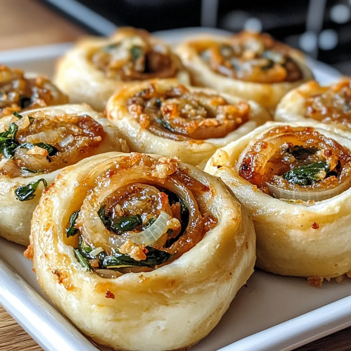 Während ich in meiner Küche stehe und die köstlichen Aromen von karamellisierten Zwiebeln über meine Sinne strömen, weiß ich, dass ich etwas ganz Besonderes zaubere. Die veganisierten karamellisierten Zwiebel- und Spinat-Pizzarollen sind nicht nur ein Genuss für den Gaumen, sondern auch ein absolutes Highlight für jeden Snackabend. Diese fluffigen, goldenen Rollen sind gefüllt mit süßen Zwiebeln und aromatischem Spinat – perfekt für alle, die nach einer herzhaften und zugleich pflanzlichen Alternative suchen. Außerdem sind sie ideal zum Vorbereiten für gesellige Abende oder als schneller Snack für unterwegs. Und wer kann schon einem warmen, frisch gebackenen Bissen widerstehen? Neugierig, wie du diese kleinen Köstlichkeiten selbst zaubern kannst? Warum wirst du diese Pizzarollen lieben? Einfachheit: Diese veganisierten karamellisierten Zwiebel- und Spinat-Pizzarollen sind kinderleicht zuzubereiten, sodass auch weniger erfahrene Köche sie meistern können. Vielseitigkeit: Du kannst die Füllung nach Belieben anpassen, indem du Zutaten wie Gnocchi Mit Rezept hinzufügst oder sogar mit Süßkartoffeln experimentierst. Herzhafter Geschmack: Die Kombination aus süßen karamellisierten Zwiebeln und würzigem Spinat bietet ein geschmackliches Erlebnis, das jeden begeistern wird. Perfekte Snackgröße: Ideal für gesellige Runden oder um den Hunger zwischendurch zu stillen – diese Pizzarollen sind der Hit auf jedem Tisch! Vorbereiten: Du kannst sie im Voraus zubereiten und im Kühlschrank aufbewahren. Am besten servierst du sie warm, dunkle in eine leichte Cremige Champignon Einfach Sauce für extra Genuss! Veganisierte karamellisierte Zwiebel- und Spinat-Pizzarollen Zutaten Für den Teig • Allzweckmehl – sorgt für die Struktur des Teigs; kann durch glutenfreies Mehl ersetzt werden. • Trockenhefe – lockert den Teig auf und sorgt für eine leichte Konsistenz; achte darauf, dass sie frisch ist. • Warmes Wasser – aktiviert die Hefe; achte darauf, dass es nicht zu heiß ist, um die Hefe nicht zu töten. • Olivenöl – verleiht dem Teig Reichhaltigkeit und Feuchtigkeit; kann für eine fettärmere Option durch Aquafaba ersetzt werden. • Salz – verbessert den Geschmack und kontrolliert die Hefeaktivität; keine direkten Ersatzmöglichkeiten empfohlen. Für die Füllung • Karamellisierte Zwiebeln – verleihen Süße und Tiefe; verwende langsam gekochte Zwiebeln für das beste Ergebnis. • Frischer Spinat – bringt eine nahrhafte, erdige Komponente; kann durch Grünkohl ersetzt werden, wenn gewünscht. • Knoblauch – bietet ein aromatisches Aroma; kann durch Knoblauchpulver ersetzt werden, um Zeit zu sparen. • Tomatensauce – gibt Feuchtigkeit und eine würzige Note; wähle eine dicke, gut gewürzte Sauce, um Sumpfigkeit zu vermeiden. • Nährhefe (optional) – sorgt für einen käsigen Geschmack; kann bei Nichtverfügbarkeit weggelassen werden. Die veganisierten karamellisierten Zwiebel- und Spinat-Pizzarollen sind nicht nur eine köstliche Wahl, sondern auch eine hervorragende Option für alle, die auf der Suche nach pflanzlichen Snacks sind. Schritt-für-Schritt-Anleitung für veganisierte karamellisierte Zwiebel- und Spinat-Pizzarollen Step 1: Teig zubereiten In einer großen Schüssel das warme Wasser, die Trockenhefe und eine Prise Zucker vermengen. Nach etwa 5 Minuten, wenn die Mischung schäumt, das Allzweckmehl, Olivenöl und Salz hinzufügen. Mit einem Löffel gut vermischen und dann den Teig auf einer bemehlten Oberfläche für ca. 5 Minuten kneten, bis er glatt ist. Den Teig in eine gefettete Schüssel geben, abdecken und 1 Stunde an einem warmen Ort gehen lassen, bis er sich verdoppelt hat. Step 2: Füllung vorbereiten In einer Pfanne bei niedriger Hitze Olivenöl erhitzen und die Zwiebeln etwa 20 Minuten karamellisieren, bis sie goldbraun sind. Dann den gehackten Knoblauch für 1-2 Minuten hinzufügen, gefolgt vom frischen Spinat. Rühren, bis der Spinat verwelkt ist, und optional Nährhefe sowie Gewürze nach Geschmack untermischen. Die Füllung sollte aromatisch und gut durchgezogen sein. Step 3: Pizzarollen formen Den aufgegangenen Teig auf einer leicht bemehlten Fläche auf eine Dicke von etwa 1/4 Zoll ausrollen. Die vorbereitete Füllung gleichmäßig auf dem Teig verteilen, dabei einen Rand lassen. Den Teig von der langen Seite her eng aufrollen, um eine zylindrische Form zu erhalten, und dann in gleichmäßige Stücke schneiden, um die Portionen für die veganisierten karamellisierten Zwiebel- und Spinat-Pizzarollen zu erstellen. Step 4: Backen Die geschnittenen Pizzarollen in eine gefettete Auflaufform legen, dabei genügend Platz zwischen den Rollen lassen, damit sie aufgehen können. Die Form abdecken und für weitere 30 Minuten an einem warmen Ort gehen lassen. Währenddessen den Ofen auf 190°C (375°F) vorheizen. Danach die Rollen für ca. 25-30 Minuten backen, bis sie goldbraun sind und der Duft von gebackenem Brot den Raum erfüllt. Step 5: Servieren Nach dem Backen die veganisierten karamellisierten Zwiebel- und Spinat-Pizzarollen aus dem Ofen nehmen und etwas abkühlen lassen. Warm servieren, am besten mit einer zusätzlichen Portion Tomatensauce zum Dippen. Diese leckeren Snackrollen sind perfekt für jede Zusammenkunft oder einfach als gesunder Snack für zwischendurch. Bereite die veganisierten karamellisierten Zwiebel- und Spinat-Pizzarollen im Voraus vor! Diese veganisierten karamellisierte Zwiebel- und Spinat-Pizzarollen sind perfekt für die Meal Prep! Du kannst den Teig bis zu 24 Stunden im Voraus zubereiten, indem du ihn nach dem Kneten in eine geölte Schüssel legst und kühlst, damit er frisch bleibt. Auch die Füllung aus karamellisierten Zwiebeln und Spinat kann bis zu 3 Tage im Voraus zubereitet und in einem luftdichten Behälter im Kühlschrank aufbewahrt werden. Wenn du bereit bist, die Pizzarollen zu backen, forme sie einfach nach den Anleitungsschritten und lasse sie bei Raumtemperatur für ca. 30 Min