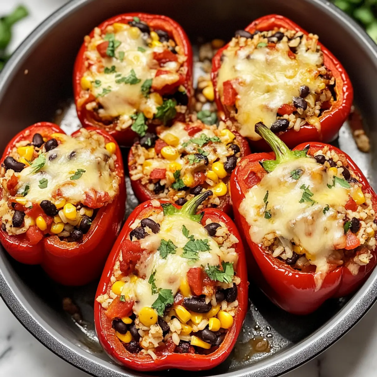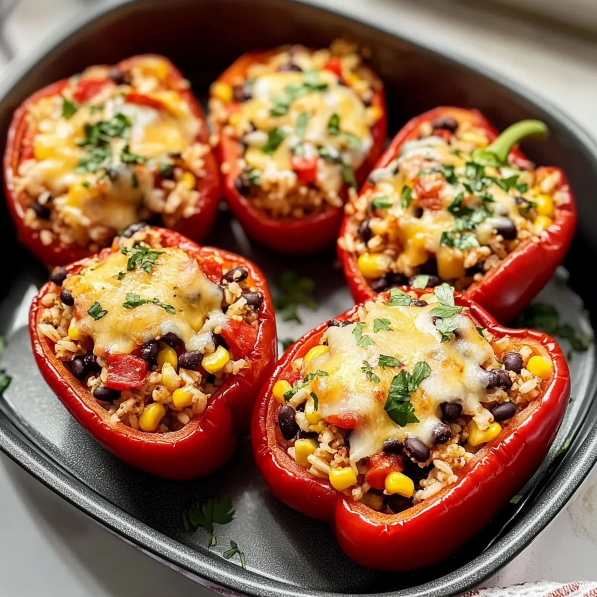 Wenn der Duft von frisch gebackenem Käse und gewürzten Kräutern in der Küche durch die Luft schwebt, weiß ich, dass es Zeit ist für meine Lieblingsrezepte. Die vegetarischen gefüllten Paprika sind nicht nur eine wahre Gaumenfreude, sondern auch eine perfekte Lösung für schnelle Abendessen unter der Woche. Mit einer herzhaften Füllung aus Bohnen und Reis, ergänzt von schmelzendem Käse, werde ich immer wieder begeistert. Diese würzigen, bunten Schoten sind nicht nur sättigend und gesund, sondern auch vielseitig in der Zubereitung – du kannst sie ganz nach deinem Geschmack variieren. Bist du bereit, deine eigene Küche in ein köstliches Abenteuer zu verwandeln? Warum sind diese gefüllten Paprika ein Hit? Vielseitigkeit: Mit verschiedenen Füllungen, wie Bohnen und Reis, kannst du diese gefüllten Paprika nach deinem Geschmack anpassen. Experimentiere mit variaciónen wie Quinoa oder Spinat! Einfachheit: Die Zubereitung ist unkompliziert und benötigt keine speziellen Kochkünste. Perfekt für ein schnelles Abendessen unter der Woche! Gesundheitlich: Diese vegetarische Mahlzeit ist nicht nur lecker, sondern auch nährstoffreich und trägt zu einer gesunden Ernährung bei. Crowd-Pleaser: Familie und Freunde werden von diesem bunten Gericht begeistert sein, das sowohl Augen als auch Gaumen anspricht. Zeitersparnis: Du kannst die Füllung im Voraus zubereiten und die Paprika nur noch füllen und backen, um Zeit zu sparen. Zutaten für vegetarische gefüllte Paprika • Hier sind die leckeren Zutaten, die du für diese köstlichen gefüllten Paprika benötigst! Für die Füllung Olivenöl – sorgt für ein reichhaltiges Aroma und verhindert das Ankleben. Kann durch Rapsöl ersetzt werden. Rote Paprika – die Basis für das Gericht, vor der Verwendung halbieren und entkernen. Grüne oder gelbe Paprika können für einen anderen Geschmack verwendet werden. Gelbe Zwiebel – bringt aromatische Noten. Kann durch Schalotten für einen milderen Geschmack ersetzt werden. Langkornreis – die Hauptquelle für Kohlenhydrate. Brauner Reis kann verwendet werden, jedoch muss die Kochzeit und die Menge an Flüssigkeit angepasst werden. Meersalz – hebt die Aromen hervor. Kann durch natriumarme Alternativen für eine gesündere Option ersetzt werden. Gemüsebrühe – dient als Flüssigkeit zum Kochen des Reises; Wasser oder Hühnerbrühe sind ebenfalls möglich, wenn nicht strikt vegetarisch. Dosen-Tomaten – bringen Feuchtigkeit und Säure ins Gericht. Frische Tomaten können ebenfalls verwendet werden; die Menge anpassen. Frühlingszwiebeln – bieten einen frischen, milden Zwiebelgeschmack. Können durch Schnittlauch ersetzt werden. Schwarze Bohnen – liefern wertvolles Protein und Ballaststoffe. Andere Bohnen sind ebenfalls möglich, jedoch gründlich abspülen. Gefrorener Mais – bringt Süße und Textur. Frischer Mais kann verwendet werden, wenn verfügbar. Pepper Jack Käse – sorgt für Cremigkeit und eine leichte Schärfe. Kann durch Mozzarella ersetzt oder für eine vegane Option weggelassen werden. Koriander (optional) – für die Garnitur und zusätzlichen Frischekick. Notiz: Diese vegetarischen gefüllten Paprika sind nicht nur lecker, sondern auch eine gesunde Wahl für dein nächstes Abendessen! Schritt-für-Schritt-Anleitungen für vegetarische gefüllte Paprika Step 1: Ofen vorheizen Heize den Ofen auf 200 °C (400 °F) vor. Während der Ofen sich aufheizt, fette eine Auflaufform leicht mit etwas Olivenöl ein, um ein Ankleben der gefüllten Paprika zu verhindern. Dies ist der erste Schritt zu deiner köstlichen und herzhaften Mahlzeit! Step 2: Füllung zubereiten Erhitze in einer großen Pfanne drei Esslöffel Olivenöl bei mittlerer Hitze. Füge eine gewürfelte gelbe Zwiebel hinzu und brate sie etwa 3–5 Minuten an, bis sie weich und leicht durchsichtig ist. Dies sorgt für eine aromatische Basis für deine würzige Füllung. Step 3: Reis und Gewürze hinzufügen Gib 1 Tasse Langkornreis, einen Teelöffel Meersalz, 2 Tassen Gemüsebrühe und 400 g Dosen-Tomaten in die Pfanne. Rühre alles gut um und bringe die Mischung zum Kochen. Decke die Pfanne ab und lasse die Mischung bei niedriger Hitze ca. 25 Minuten kochen, bis der Reis gar ist und die Flüssigkeit aufgesogen wurde. Step 4: Bohnen und Mais einrühren Rühre nach 25 Minuten 400 g schwarze Bohnen und 150 g gefrorenen Mais in die Reis-Mischung. Dies bringt zusätzliche Textur und Geschmack in deine Füllung. Lass die Mischung noch einmal 5 Minuten auf dem Herd, damit sich die Aromen gut verbinden. Step 5: Paprika vorbereiten Während die Füllung sanft vor sich hin köchelt, halbiere vier rote Paprika, entferne die Kerne und stelle sie in die vorbereitete Auflaufform. Achte darauf, dass die Paprikahälften stabil stehen, damit die Füllung darin hervorragend zur Geltung kommt. Step 6: Füllen und Käse hinzufügen Fülle jede Paprikahälfte großzügig mit der Reis-Bohnen-Mischung. Streue 200 g geriebenen Pepper Jack Käse gleichmäßig über die gefüllten Paprika, um eine leckere Kruste zu erzeugen. Der Käse wird beim Backen wunderbar schmelzen und die Füllung zusammenhalten. Step 7: Backen Setze die gefüllten Paprika in den vorgeheizten Ofen und backe sie etwa 40 Minuten lang. Achte darauf, dass die Paprika weich sind und der Käse eine goldene Farbe angenommen hat. Dies bedeutet, dass deine vegetarischen gefüllten Paprika perfekt gegart sind. Step 8: Garnieren und Servieren Nimm die gefüllten Paprika aus dem Ofen und lasse sie kurz abkühlen. Bestreue die Paprika nach Belieben mit frischem Koriander für einen zusätzlichen Frischekick. Jetzt sind deine köstlichen vegetarischen gefüllten Paprika bereit, serviert zu werden! Expert Tips für vegetarische gefüllte Paprika • Vorbereitung ist alles: Bereite die Füllung im Voraus vor und lagere sie im Kühlschrank. So hast du ein schnelles Abendessen, wenn du wenig Zeit hast. • Perfekte Füllmenge: Achte darauf, die Paprika nicht zu überfüllen.