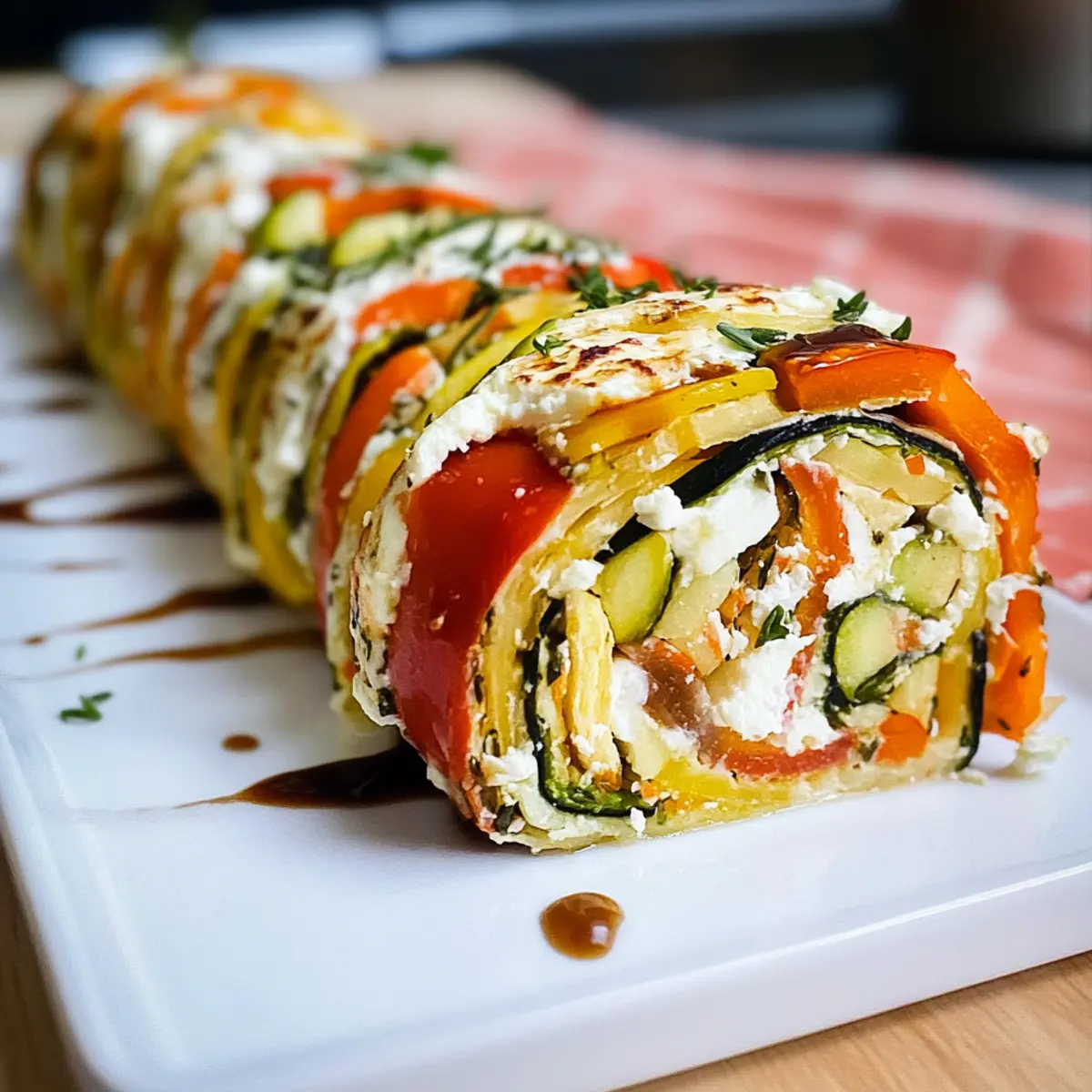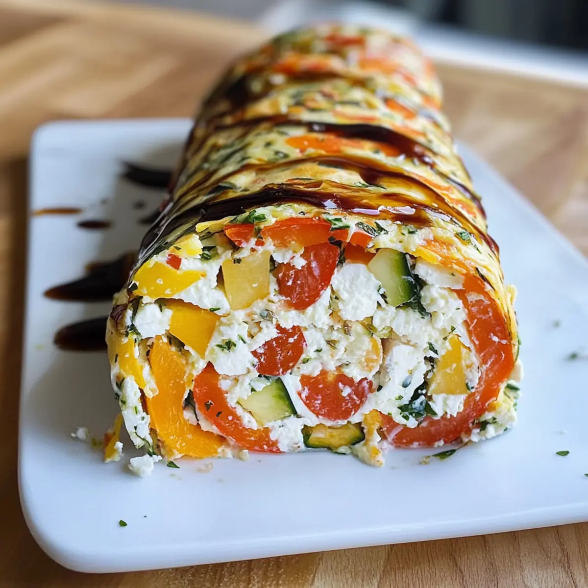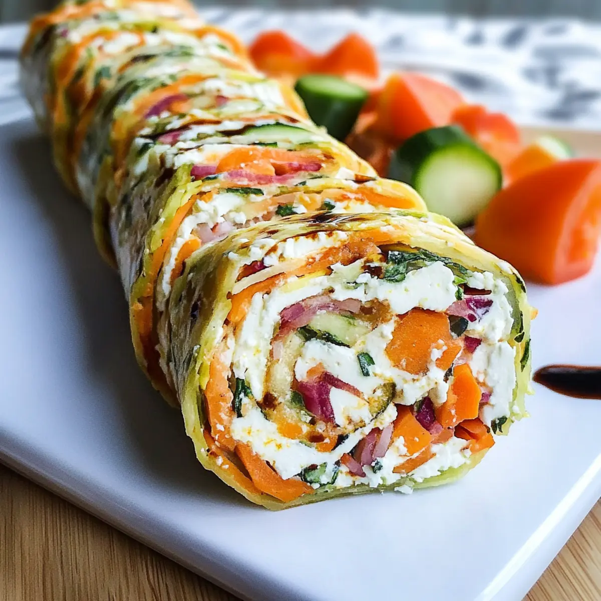 In einem kleinen Café an der Ecke, wo das Aroma frisch gebackener Köstlichkeiten in der Luft lag, hörte ich eine leidenschaftliche Diskussion über gesunde Ernährung. Eine Stimme steckte mir die Idee für meine eigene Kreation: die vegetarische Gemüserolle mit Frischkäse und Feta. Dieses Rezept bringt nicht nur bunte Farben auf den Tisch, sondern ist auch ein perfekter Snack, der kalt genossen werden kann. Die Kombination aus leichtem Frischkäse und würzigem Feta, ergänzt durch frisches Gemüse und proteinreiche Eier, sorgt für einen köstlichen und nährstoffreichen Genuss. Ideal für Meal Prep, lässt sich die Rolle schnell zubereiten und bleibt kalorienbewusst—ideal für ein leichtes Mittagessen oder einen schmackhaften Snack. Neugierig, wie einfach diese gesunde Leckerei zuzubereiten ist? Lass uns gleich loslegen! Warum werden Sie dieses Rezept lieben? Einfachheit: Die Zubereitung dieser vegetarischen Gemüserolle ist unkompliziert und schnell. Mit ein paar frischen Zutaten und klassischen Küchentechniken entsteht eine köstliche Mahlzeit. Vielseitigkeit: Ganz gleich, ob fischliebend oder fleischbasiert – die Füllungen sind anpassbar! Experimentieren Sie mit verschiedenen Zutaten wie Avocado oder geräuchertem Lachs für neue Geschmackserlebnisse. Gesund und nahrhaft: Diese Rolle ist nicht nur schmackhaft, sondern auch nahrhaft und proteinreich, ideal für Ihre Meal Prep-Bedürfnisse. Genießen Sie sie als leichten Snack oder zum Mittagessen! Perfekte Textur: Die Kombination aus einem herzhafte Gemüseboden, einer cremigen Füllung und frischen Zutaten sorgt für einen einzigartigen Geschmack, der jede Biss zu einem Genuss macht. Crowd-Pleaser: Egal, ob bei einer Feier oder einem entspannten Abendessen, diese Rolle wird mit Sicherheit Ihre Familie und Freunde begeistern! Zutaten für die vegetarische Gemüserolle • Hier sind die Essentials für Ihre vegetarische Gemüserolle mit Frischkäse und Feta! Für den Teig Kartoffeln – sorgen für Volumen und eine angenehme Textur. Ersatz: Für eine niedrigere Kohlenhydratversion verwenden Sie mehr Zucchini oder Karotten. Karotten – bringen Süße und Farbe ins Spiel. Kein spezifischer Ersatz nötig. Zucchini – trägt zur Feuchtigkeit und Ernährung bei. Kein spezifischer Ersatz nötig. Eier (4 mittel) – wirken als Bindemittel und halten die Rolle zusammen. Essenziell für die Struktur. Geriebener Mozzarella (50g) – verstärkt die Cremigkeit und den Geschmack. Kann durch eine fettarme Variante oder durch Weglassen ersetzt werden. Salz (1 TL) – verbessert den Geschmack. Nach Belieben anpassen. Für die Füllung Kirschtomaten (150g) – bringen Frische und einen Geschmacksburst mit sich. Optional: andere Tomatensorten verwenden oder für eine kohlenhydratarme Variante weglassen. Leichter Frischkäse (80g) – cremige Füllung, die Geschmack ohne viele Kalorien bietet. Kann durch Ricotta oder einen pflanzlichen Käse ersetzt werden. Leichter Feta (180g) – sorgt für würzige Noten und Reichhaltigkeit. Kann durch Ziegenkäse ersetzt oder bei Bedarf weggelassen werden. Balsamico-Creme (2 EL) – liefert einen süß-sauren Geschmack, der die herzhaften Füllungen ergänzt. Kann durch Balsamico-Essig für eine leichtere Variante ersetzt werden. Schritt-für-Schritt-Anleitung für die vegetarische Gemüserolle mit Frischkäse und Feta Step 1: Ofen vorheizen Heizen Sie den Ofen auf 180°C (356°F) im Umluftmodus vor. Dies sorgt dafür, dass die Temperatur gleichmäßig verteilt wird und die vegetarische Gemüserolle gleichmäßig gebacken wird. Bereiten Sie ein Backblech vor, indem Sie es mit Backpapier auslegen, um ein Ankleben zu verhindern. Step 2: Gemüse vorbereiten Schälen Sie die Kartoffeln und Karotten und waschen Sie die Zucchini gründlich. Reiben Sie alle Gemüse mit einer Reibe und geben Sie sie in eine Schüssel. Vermischen Sie das Gemüse mit einem Teelöffel Salz und lassen Sie es für 30 Minuten ruhen, um überschüssige Feuchtigkeit zu entwässern. Step 3: Feuchtigkeit ausdrücken Nach 30 Minuten nehmen Sie ein Küchentuch und pressen das geriebene Gemüse aus, um die gesamte überschüssige Feuchtigkeit zu entfernen. Dies ist entscheidend, um eine matschige Konsistenz der Rolle zu vermeiden. Das Gemüse sollte gut ausgedrückt werden, sodass es trocken genug ist, um die anderen Zutaten zu halten. Step 4: Mischung anfertigen In einer großen Schüssel vermengen Sie das ausgedrückte Gemüse mit den vier verquirlten Eiern und dem geriebenen Mozzarella. Diese Mischung dient als Basis für die vegetarische Gemüserolle und sorgt dafür, dass sie beim Backen zusammenhält. Rühren Sie alles gut um, bis eine homogene Masse entsteht. Step 5: Backen der Rolle Verteilen Sie die Gemüsemischung gleichmäßig auf dem vorbereiteten Backblech, und drücken Sie sie leicht platt, damit sie gleichmäßig backt. Stellen Sie das Backblech in den vorgeheizten Ofen und backen Sie die Rolle für etwa 30 Minuten, bis sie fest und leicht goldbraun ist. Achten Sie darauf, dass die Ränder schön gebräunt sind. Step 6: Füllung zubereiten Nehmen Sie die gebackene Gemüsebasis aus dem Ofen und lassen Sie sie kurz abkühlen. Würfeln Sie währenddessen die Kirschtomaten. Verstreichen Sie den Frischkäse gleichmäßig über die gebackene Grundlage und streuen Sie den zerbröckelten Feta sowie die gewürfelten Tomaten darüber. Step 7: Rolle formen Träufeln Sie die Balsamico-Creme gleichmäßig über die Füllung. Beginnen Sie an einer der kurzen Seiten und rollen Sie die Gemüserolle vorsichtig, aber fest auf. Achten Sie darauf, dass die Füllung nicht herausfällt. Verwenden Sie das Backpapier, um beim Rollen zu helfen, wenn nötig. Step 8: Schneiden und Servieren Nach dem Rollen schneiden Sie die vegetarische Gemüserolle in ungefähr 10 gleich große Stücke. Diese Stücke eignen sich perfekt als Fingerfood oder Snack. Servieren Sie die Rolle kalt oder lassen Sie sie bei Zimmertemperatur stehen, um den Geschmack zu intensiv