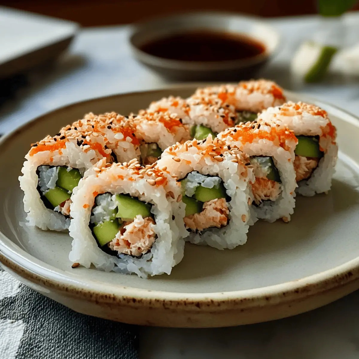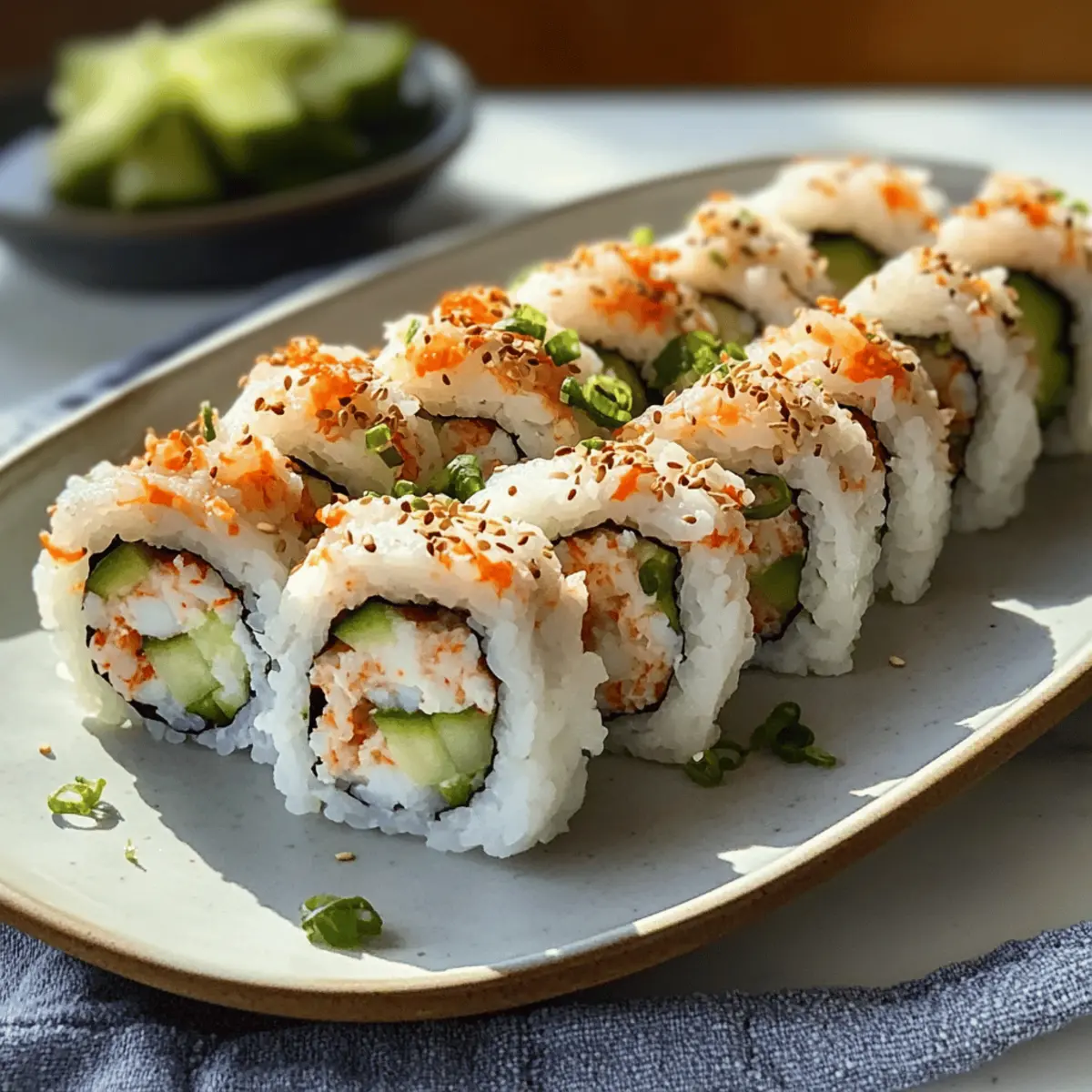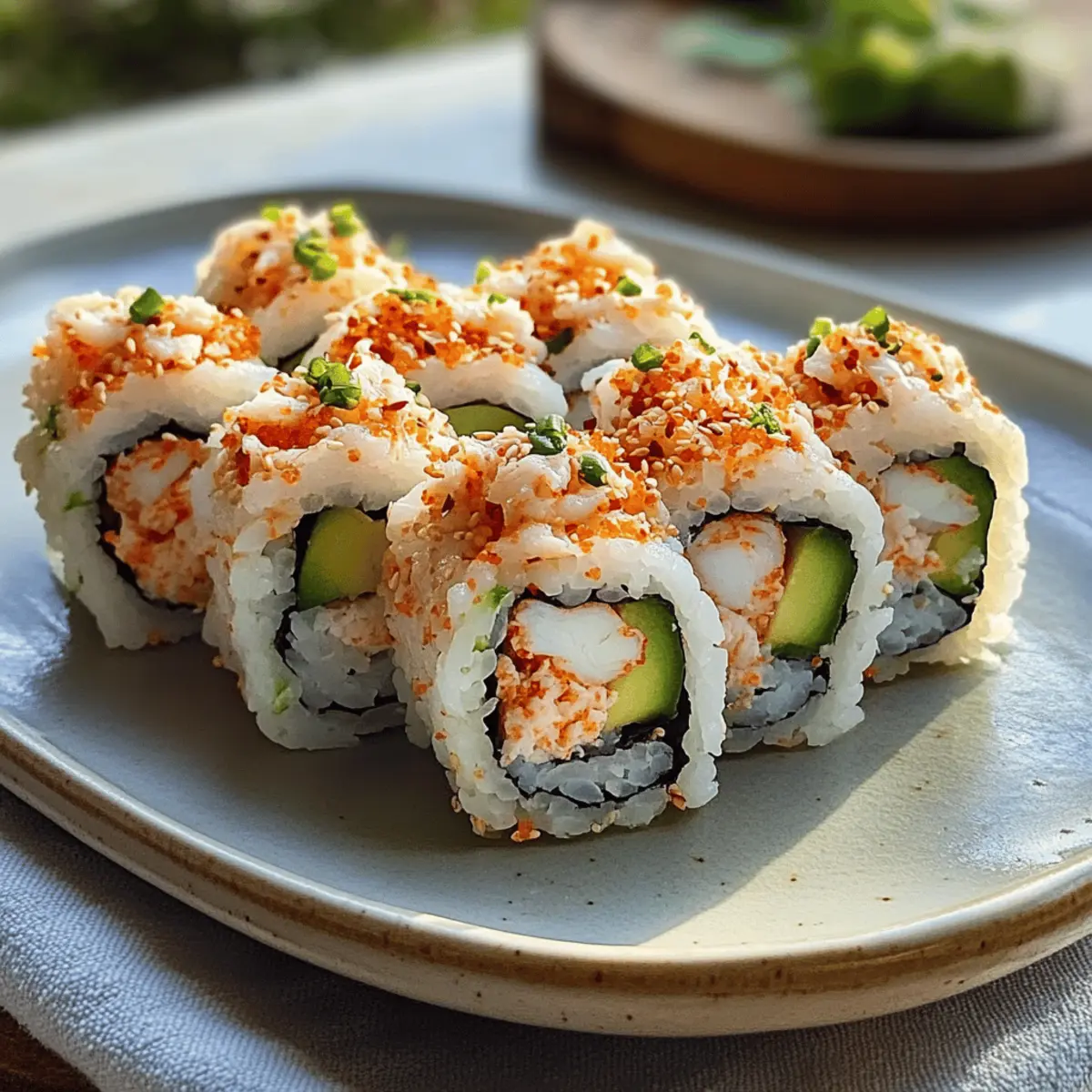 Jeder Sushi-Liebhaber weiß, dass der perfekte Bissen eine Kombination aus knusprigen, cremigen und würzigen Aromen erfordert. Heute lade ich dich ein, eine aufregende Reise in die Welt der selbstgemachten Sushi-Rollen zu unternehmen – mit unserem würzigen Krabbensushi-Roll! Dieses Rezept ist nicht nur anfängerfreundlich, sondern auch mühelos anpassbar, sodass du deine persönlichen Vorlieben einfließen lassen kannst. Egal, ob du es scharf, fruchtig oder klassisch magst, diese Sushi-Rolle ist die ideale Wahl für einen geselligen Abend mit Freunden oder eine entspannte Nacht zu Hause. Der frische Geschmack von Avocado und Gurke, kombiniert mit der würzigen Note von imitation Krabbenfleisch, wird dich garantiert begeistern. Neugierig, wie du deine eigenen köstlichen Sushi-Rollen zaubern kannst? Lass uns gemeinsam in die Zubereitung eintauchen! Warum wirst du diese Sushi-Rolle lieben? Einfachheit: Dieses Rezept ist nicht nur unkompliziert, sondern auch perfekt für Anfänger geeignet. Du benötigst keine speziellen Fähigkeiten, um atemberaubende Sushi-Rollen zu kreieren! Vielseitigkeit: Lüste nach etwas Neuem? Du kannst diese Rolle nach Herzenslust anpassen, zum Beispiel mit einer Kombination aus Spicy Crab and Shrimp Roll oder einer fruchtigen Spicy Crab and Mango Roll. Frische Zutaten: Die Verwendung von frischen Zutaten wie Avocado und Gurke verleiht jedem Biss eine köstliche Frische, die dich sofort begeistert. Perfekter Genuss: Ideal für gemeinsame Abende mit Freunden oder als leckerer Snack für dich selbst! Jeder Biss ist eine Geschmacksexplosion, die du nie vergessen wirst. Gesundheitsbewusst: Mit viel Gemüse und gesunden Fetten aus der Avocado ist dieser Sushi-Roll eine kalorienbewusste Wahl – perfekt für jede Gelegenheit! Würziger Krabbensushi-Roll Zutaten Hinweis: Dieser würzige Krabbensushi-Roll ist perfekt für deine nächste Sushi-Paarung! Für den Sushi-Reis: Sushi Reis – Bildet die Basis für die Rolle; verwende kurzen braunen Reis für eine gesündere Option. Wasser – Zum Kochen des Sushi-Reises notwendig. Ungewürzter Reisessig – Fügt eine angenehme Säure hinzu und würzt den Reis. Zucker – Balanciert die Säure des Reisessigs aus. Küchen-Salz – Verstärkt den Geschmack des Sushi-Reises. Für die Füllung: Imitation Krabbenfleisch – Hauptfüllung, die der Rolle ihren charakteristischen Geschmack verleiht. Kewpie-Mayonnaise – Sorgt für Cremigkeit und einen reichen Geschmack in der Krabbenmischung; herkömmliche Mayonnaise kann auch verwendet werden. Sriracha – Fügt der Füllung Schärfe hinzu; passe die Menge nach deinem gewünschten Schärfegrad an. Frischer Limettensaft – Bringt Frische und hebt die Aromen hervor. Sesamöl – Für zusätzlichen nussigen Geschmack. Avocado – Sorgt für Cremigkeit und gesunde Fette. Persische Gurken – Fügt Knusprigkeit und Frische hinzu. Für den Zusammenbau: Nori (Algen) – Umwickelt die Rolle zusammen. Schwarze und weiße Sesamsamen – Optionale Garnitur für zusätzliche Textur und Präsentation. Servieren: Sojasauce, Wasabi, eingelegter Ingwer – Traditionelle Beilagen zur Sushi-Darreichung. Schritt-für-Schritt-Anleitung für den Würzigen Krabbensushi-Roll Step 1: Sushi-Reis vorbereiten Spüle 1½ Tassen Sushi-Reis 4–5 Mal, bis das Wasser klar ist. Koche den Reis in einem Reiskocher mit 2 Tassen Wasser, bis er weich und klebrig ist. Vermische in einer Schüssel ungewürzten Reisessig, Zucker und Salz, bis sich alles aufgelöst hat. Füge diese Mischung unter den fertigen Reis, während er noch warm ist, und lasse ihn abkühlen. Step 2: Würzige Krabbenfüllung zubereiten Schneide das Imitat-Krabbenfleisch in kleine Stücke und gib es in eine Schüssel. Füge Kewpie-Mayonnaise, Sriracha, frischen Limettensaft und Sesamöl hinzu. Rühre alles vorsichtig um, bis die Zutaten gut vermischt sind. Dies wird die cremige und würzige Füllung für deinen Würzigen Krabbensushi-Roll. Step 3: Sushi-Rollen zusammenstellen Lege eine Bambusmatte mit Frischhaltefolie aus, um ein Ankleben zu verhindern. Platziere eine halbe Nori-Blatt auf der Matte und verteile ⅓ Tasse Sushi-Reis gleichmäßig darauf. Achte darauf, dass der Reis bis zum Rand reicht, und streue ein paar Sesamsamen darüber. Das bildet die Grundlage deiner Würzigen Krabbensushi-Roll. Step 4: Rolle formen Gib die würzige Krabbenfüllung, einige Scheiben Avocado und dünne Streifen der persischen Gurke auf die Reisschicht. Fange dann an, die Rolle vorsichtig zu formen, indem du die Bambusmatte anhebst und sanft drückst. Rolle die Sushi bis zum Ende und achte darauf, dass sie fest bleibt, aber nicht zerdrückt wird. Step 5: Sushi schneiden und servieren Verwende ein scharfes Messer, das in warmem Wasser getaucht ist, um die Rolle in gleichmäßige Stücke zu schneiden. Dies verhindert, dass der Reis kleben bleibt. Serviere die Würzigen Krabbensushi-Rollen sofort mit Sojasauce, Wasabi und eingelegtem Ingwer für ein authentisches Erlebnis. Lagerungstipps für Würziger Krabbensushi-Roll Raumtemperatur: Sushi-Rollen sollten nicht länger als 2 Stunden bei Raumtemperatur aufbewahrt werden, um eine optimale Frische und Sicherheit zu gewährleisten. Kühlschrank: Bewahre die Würzigen Krabbensushi-Rollen in einem luftdichten Behälter im Kühlschrank auf. Konsumiere sie innerhalb von 24 Stunden für den besten Geschmack. Gefrierschrank: Obwohl es nicht ideal ist, können Reste für bis zu 1 Monat im Gefrierfach gelagert werden. Um gefrorene Sushi-Rollen aufzutauen, lasse sie über Nacht im Kühlschrank. Wiedererwärmung: Sushi-Rollen sollten nicht erneut erhitzt werden. Die Textur und der Geschmack könnten beeinträchtigt werden, weshalb frisch zubereitete Varianten stets bevorzugt werden. Meal Prep für deinen Würzigen Krabbensushi-Roll Die Zubereitung des würzigen Krabbensushi-Rolls eignet sich hervorragend für die flexible Essensplanung! Du kannst den Sushi-Reis bis zu 24 Stunden im Voraus vorbereiten und im Kühlschrank aufbew