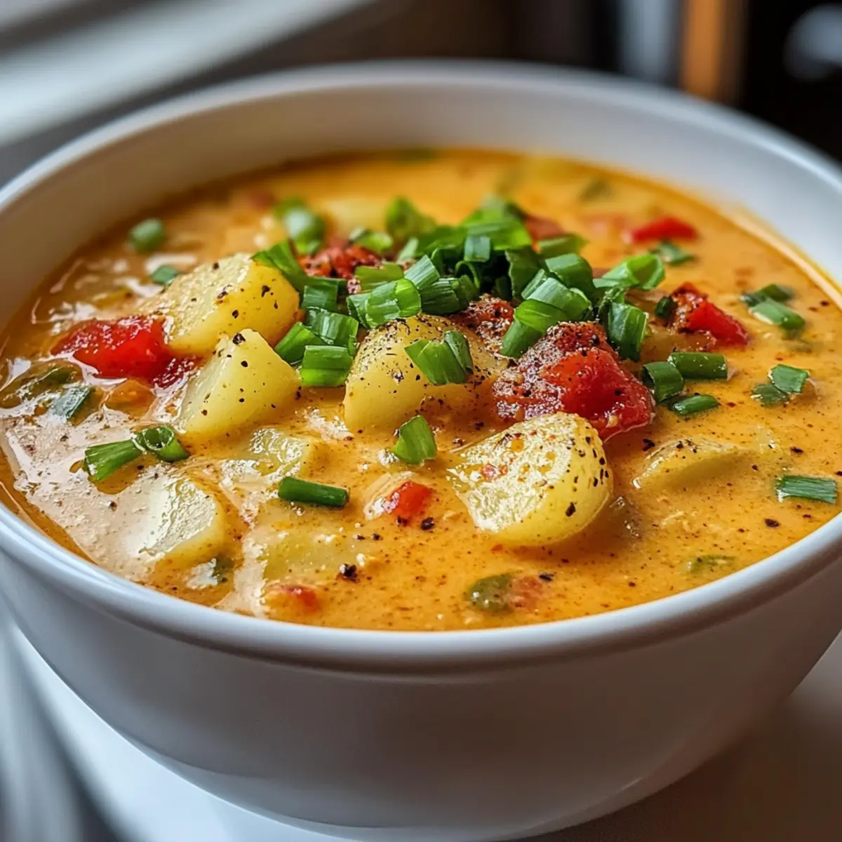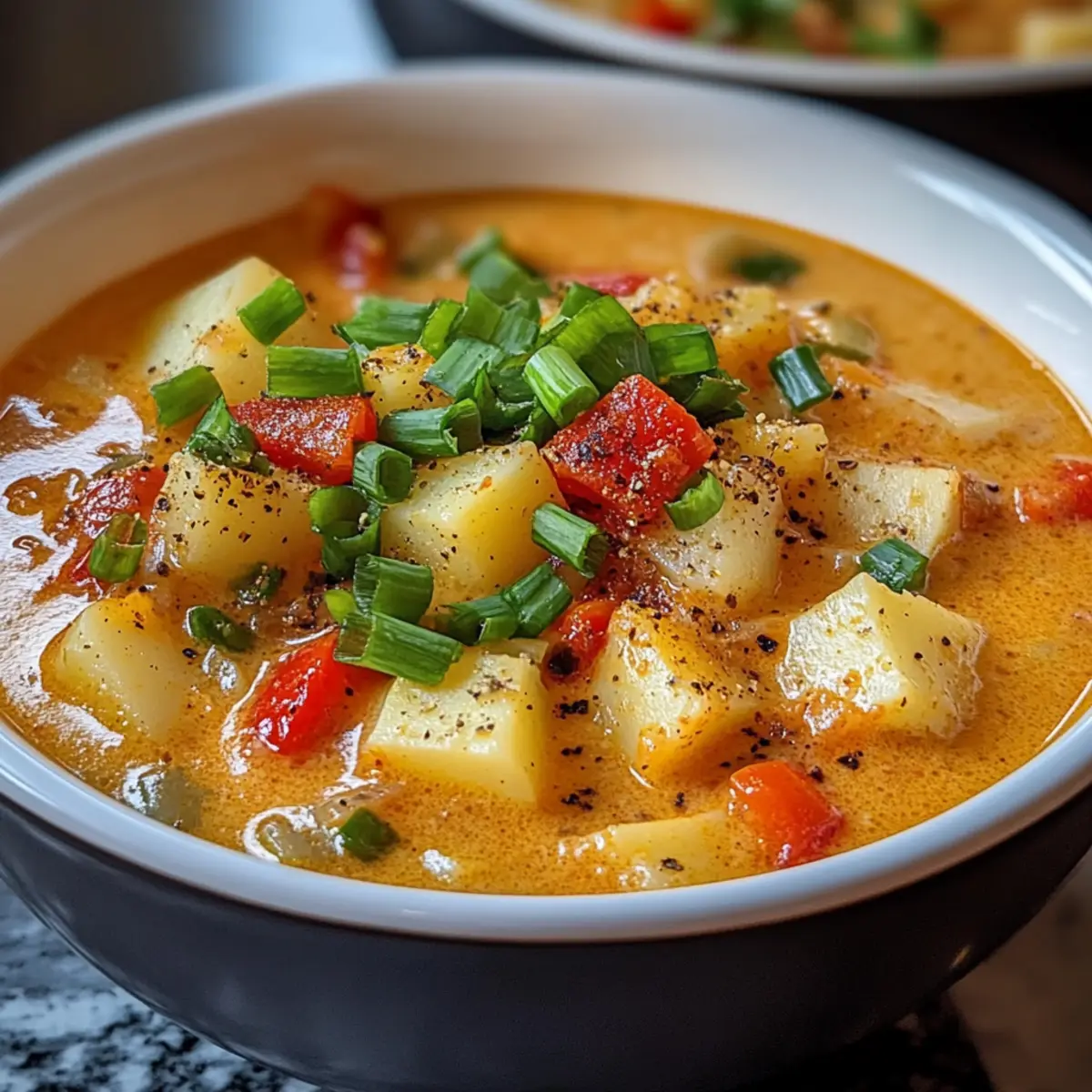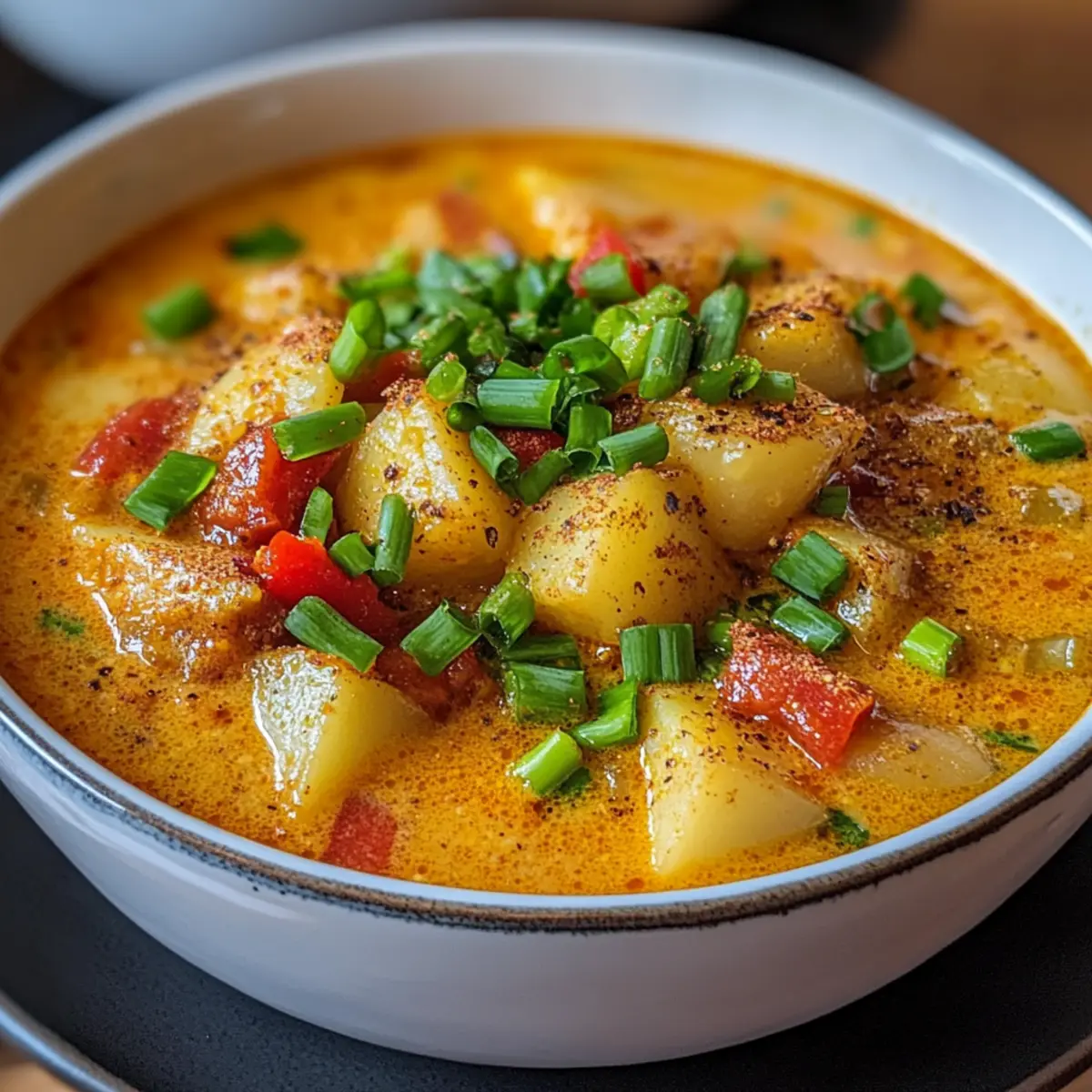 Der Duft von gebratenen Zwiebeln und Knoblauch erfüllt die Küche, während ich in den Topf schaue und beinahe über den herzhaften Anblick der Würzigen Cajun Kartoffelsuppe stauche. Diese Suppe ist mehr als nur ein schlichtes Gericht; sie bringt eine unerwartete Wärme und Behaglichkeit, die perfekt für kalte Abende ist. Schnell zubereitet und voller zarter Kartoffeln, macht sie im Handumdrehen Lust auf mehr. Kein Wunder, dass sie sich als glutenfreies Komfortessen etabliert hat! Innerhalb von nur 45 Minuten wird diese kreative Variante mit Cajun-Gewürzen und einer cremigen Konsistenz zu einem echten Hit für Familie und Freunde. Wer kann dazu schon Nein sagen? Seid ihr bereit, eure Küchenschürze anzuziehen und diese köstliche Reise zu beginnen? Warum wird diese Suppe dein neuer Favorit? Einfachheit, die begeistert: Die Zubereitung dieser Würzigen Cajun Kartoffelsuppe erfordert nur grundlegende Kochkenntnisse und wenige Schritte. Würzige Aromen, die verführen: Eine harmonische Kombination aus Cajun-Gewürzen und zarten Kartoffeln verleiht der Suppe einen unverwechselbaren Geschmack, der dich an warme Abende erinnert. Vielseitigkeit, die inspiriert: Ob mit Hühnchen oder spinat, die Variationen sind endlos – passe das Rezept an deinen Geschmack an! Schnell zubereitet, um Zeit zu sparen: Innerhalb von nur 45 Minuten auf dem Tisch – perfekt für geschäftige Wochentage oder spontane Einladungen. Comfort Food, das verbindet: Diese Suppe ist nicht nur ein Gericht, sondern eine Einladung, mit Familie und Freunden zusammenzukommen und zu genießen. Würzige Cajun Kartoffelsuppe Zutaten • Heiß auf diese leckere Suppe? Hier sind die Zutaten! Für die Suppe Kartoffeln – bilden die Basis und verleihen der Suppe ihre herzhafte Textur; Süßkartoffeln sind eine tolle Alternative für eine süßere Note. Zwiebel – sorgt für Süße und Tiefe im Geschmack; verwende Schalotten für einen milderen Geschmack. Knoblauch – verleiht ein herzhaftes Aroma und verbessert das Gesamtgeschmack; frischer Knoblauch ist ideal, während Knoblauchpulver als schnelle Lösung dienen kann. Cajun-Gewürz – bringt das charakteristische würzige Profil; sowohl gekauft als auch selbstgemacht sind großartige Optionen. Gemüsebrühe – liefert Flüssigkeit und Geschmack; Hühnerbrühe kann für eine nicht-vegetarische Variante verwendet werden. Sahne – für eine cremige Konsistenz; Kokosmilch ist eine hervorragende Wahl für eine milchfreie Variante. Paprika – bringt Farbe und zusätzlichen Geschmack; jede Farbe ist möglich; für mehr Schärfe können auch Jalapeños verwendet werden. Frühlingszwiebeln – dienen als Garnierung und sorgen für Frische; Schnittlauch kann hier eine gute Alternative sein. Step-by-Step Instructions für Würzige Cajun Kartoffelsuppe Step 1: Zutaten vorbereiten Schäle und schneide die Kartoffeln und Gemüse in gleichmäßige Würfel, damit sie gleichmäßig garen. Miss die Gewürze im Voraus ab, um den Kochprozess zu beschleunigen. Die Vorbereitung der Zutaten macht das Kochen der Würzigen Cajun Kartoffelsuppe effizienter und angenehmer. Step 2: Aromastoffe anbraten Erhitze einen großen Topf bei mittlerer Hitze und gib einen Schuss Öl hinein. Füge die gewürfelten Zwiebeln und den gehackten Knoblauch hinzu und brate sie unter ständigem Rühren etwa 3–5 Minuten lang an, bis sie weich und durchsichtig sind. Der köstliche Duft wird deine Küche erfüllen und die Basis für die Suppe bilden. Step 3: Gemüse und Gewürze hinzufügen Streue die gewürfelten Kartoffeln und das Cajun-Gewürz in den Topf und rühre alles gut um. Lass diese Mischung 2–3 Minuten lang braten, damit die Aromen sich entfalten können. Die Kartoffeln sollten leicht anbräunen, bevor du die Brühe hinzufügst, um der Würzigen Cajun Kartoffelsuppe mehr Tiefe zu verleihen. Step 4: Brühe hinzufügen Gieße die Gemüsebrühe über das Gemüse im Topf und bringe die Mischung zum Kochen. Reduziere dann die Hitze und lasse die Suppe 25–30 Minuten lang sanft köcheln, bis die Kartoffeln weich sind. Du wirst merken, dass die Suppe köchelt und beginnt, lecker zu duften. Step 5: Suppe pürieren Verwende einen Stabmixer, um die Mischung zu pürieren, bis sie die gewünschte Konsistenz erreicht hat. Du kannst die Suppe entweder ganz glatt pürieren oder nur teilweise, je nachdem, wie viel Textur du möchtest. Die Würzige Cajun Kartoffelsuppe wird dadurch cremig und einladend. Step 6: Sahne einrühren Wenn die Suppe püriert ist, rühre die Sahne ein und lasse sie bei niedriger Hitze weiter köcheln. Dies verleiht der Suppe eine herrlich cremige Textur und macht sie zu einem echten Genuss. Überprüfe die Gewürze und passe sie nach Belieben an, um die perfekte Balance zu erreichen. Step 7: Servieren Schenke die Würzige Cajun Kartoffelsuppe in Schalen und garniere sie mit frischen, gehackten Frühlingszwiebeln. Die Farben und Aromen werden zum Verweilen einladen, und du kannst das Gericht zusammen mit frischem Brot servieren. Genieße das warme, behagliche Gefühl, das diese Suppe mit sich bringt! Tipps für die beste Würzige Cajun Kartoffelsuppe Vorbereitung ist alles: Bereite alle Zutaten im Voraus vor. Das macht den Kochprozess flüssiger und vermeidet Hektik in der Küche. Achte auf die Textur: Vermeide es, die Kartoffeln zu lange zu kochen. Sie sollten weich, aber nicht matschig sein, um die perfekte Konsistenz für die Würzige Cajun Kartoffelsuppe zu erreichen. Würze immer abschmecken: Taste die Suppe während des Kochens mehrmals ab. So kannst du sicherstellen, dass die Gewürze ausgewogen sind und der Cajun-Geschmack perfekt zur Geltung kommt. Variationen ausprobieren: Sei kreativ und füge verschiedene Gemüsesorten oder Proteinquellen hinzu. So kannst du die Würzige Cajun Kartoffelsuppe deinen individuellen Vorlieben anpassen. Küchenwerkzeuge bereithalten: Ein Stabmixer ist ideal, um die Suppe schnell und einfach zu pürieren, ohne sie umfüllen zu müssen. So bleibt alles ordent