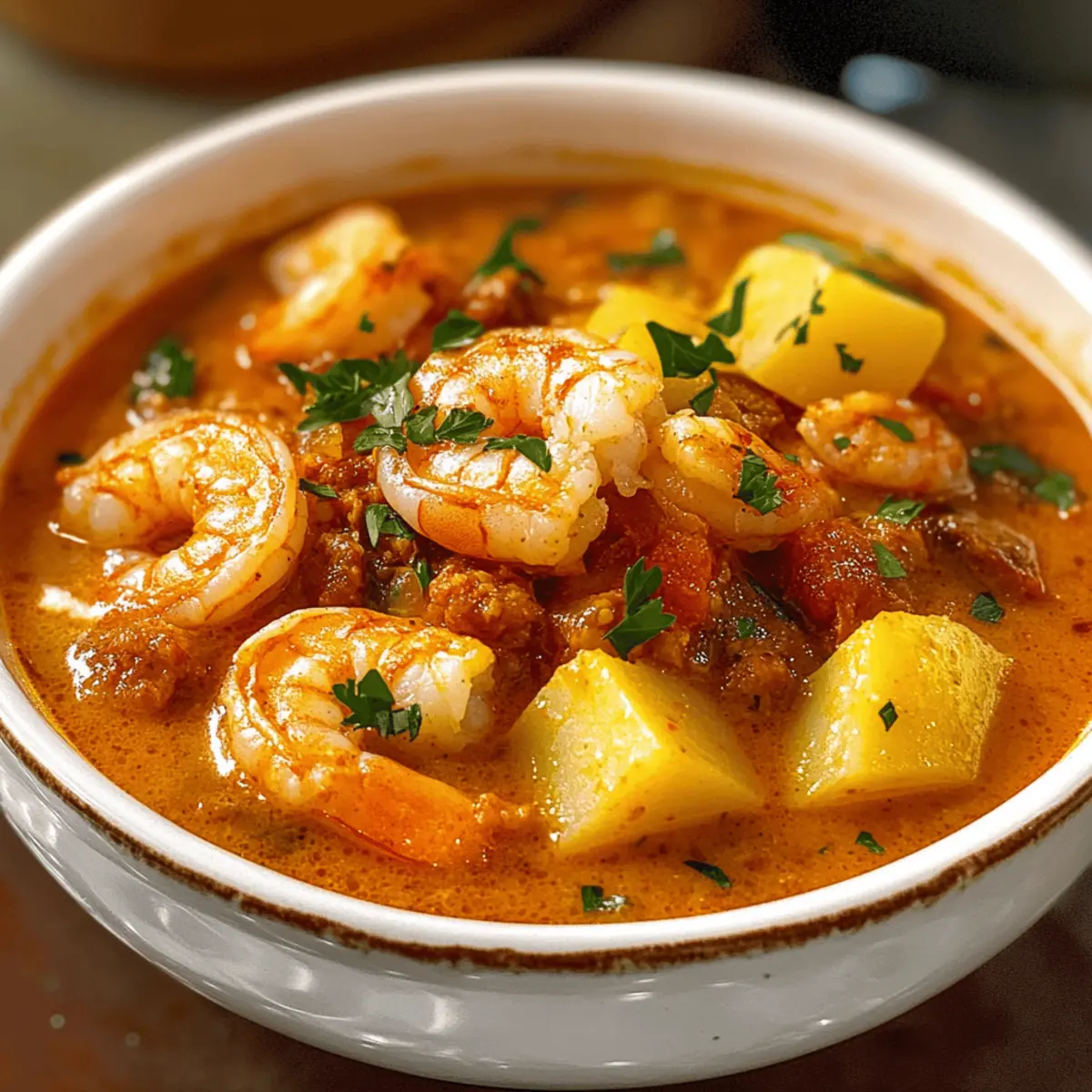 Als ich letztens in meiner Küche stand, um ein herzhaftes Gericht zu kreieren, kam mir die Idee für meine würzige Garnelen- und Chorizo-Cremesuppe mit cremiger Kokosnussbrühe. Die Kombination aus zarten Garnelen und dem rauchigen Chorizo schafft nicht nur einen geschmackvollen Genuss, sondern ist auch schnell zubereitet – perfekt für hektische Wochentage oder gemütliche Abende mit Freunden. Die cremige Textur macht diese Suppe zu einem wahren Komfortessen, das alle an den Tisch zieht. Schon in weniger als 35 Minuten zauberst du ein Gericht, das den Gaumen verwöhnt und zudem hervorragend an deine persönlichen Vorlieben anpassbar ist. Bist du bereit, deinem nächsten Abendessen einen tollen Twist zu geben? Warum wirst du diese Suppe lieben? Einzigartiger Geschmack: Die Kombination aus Garnelen und rauchigem Chorizo sorgt für ein unvergessliches Geschmackserlebnis, das deine Sinne verführt. Schnell und einfach: In nur 35 Minuten hast du ein schmackhaftes Gericht, das ideal für den hektischen Alltag ist. Vielseitig anpassbar: Ob Gemüse hinzufügen oder die Gewürze variieren – diese Suppe passt sich deinen Vorlieben perfekt an. Cremige Textur: Die Kokosnussbrühe verleiht der Suppe eine luxuriöse, cremige Konsistenz, die beim ersten Löffel begeistert. Familiäre Freude: Diese Suppe bringt alle zusammen – ideal für gemütliche Abende mit Freunden und Familie. Probiere auch unsere Vegetarische Suppenrezepte für weitere leckere Alternativen! Würzige Garnelen- und Chorizo-Cremesuppe Zutaten • Entdecke die perfekten Zutaten für deine würzige Garnelen- und Chorizo-Cremesuppe mit cremiger Kokosnussbrühe! Für die Basis Olivenöl – sorgt für eine geschmackvolle Grundlage; du kannst auch Avocadoöl verwenden. Chorizo (½ Pfund, gehäutet und zerbröselt) – fügt eine rauchige, würzige Note hinzu; verwende spanische Chorizo für das beste Ergebnis. Zwiebel (1 kleine, fein gehackt) – bringt Süße und Tiefe ins Gericht. Knoblauch (2 Zehen, gehackt) – verstärkt Aroma und Geschmack. Für die Suppe Kartoffeln (2 große, geschält und gewürfelt) – sorgt für Herzhaftigkeit und eine angenehme Textur. Hühnerbrühe (4 Tassen) – die Basis für die Suppe; Gemüsebrühe ist eine tolle vegetarische Alternative. Schlagsahne (½ Tasse) – bringt Cremigkeit; probiere für eine milchfreie Version kokosnussbasierte Alternativen. Kokosmilch (½ Tasse) – fügt eine subtile Süße hinzu, die das Gericht ausbalanciert. Garnelen (1 Pfund, geschält und entdarmt) – bietet Süße und Zartheit; du kannst auch anderes Meeresfrüchte verwenden. Würzmittel Räucherpaprika (½ Teelöffel) – verstärkt den rauchigen Geschmack. Salz und Pfeffer nach Geschmack – unerlässlich für die richtige Würze. Frische Petersilie (gehackt, zum Garnieren) – sorgt für Frische und Farbe. Schritt-für-Schritt-Anleitung für Würzige Garnelen- und Chorizo-Cremesuppe mit cremiger Kokosnussbrühe Step 1: Chorizo braten Erhitze einen großen Topf bei mittlerer Hitze und füge einen Esslöffel Olivenöl hinzu. Gib die zerbröselte Chorizo hinein und brate sie für etwa 5-7 Minuten, bis sie knusprig ist und ihr Aroma entfaltet. Achte darauf, dass sie nicht anbrennt, da das den Geschmack verändern könnte. Step 2: Zwiebel und Knoblauch anbraten Nachdem die Chorizo schön gebräunt ist, füge die fein gehackte Zwiebel und den gehackten Knoblauch hinzu. Sauté diese zwei Zutaten für etwa 3 Minuten, bis die Zwiebel weich und durchscheinend ist. Die Kombination von Chorizo und Zwiebel wird bereits appetitlich duften. Step 3: Kartoffeln und Brühe hinzufügen Streue die gewürfelten Kartoffeln in den Topf und gieße die Hühnerbrühe dazu. Rühre alles gut um und füge dann die Schlagsahne und die Kokosmilch hinzu. Bringe die Mischung zum Simmern und lasse sie 15-20 Minuten köcheln, bis die Kartoffeln zart sind und leicht auseinanderfallen. Step 4: Garnelen und Gewürze hinzufügen Sobald die Kartoffeln gar sind, füge die geschälten und entdarmten Garnelen sowie den räucherigen Paprika in die Suppe. Koche die Mischung für weitere 5-7 Minuten, bis die Garnelen ihre Farbe wechseln und rosa und undurchsichtig werden. Dies ist das Zeichen dafür, dass sie perfekt gegart sind. Step 5: Finales Würzen und Servieren Schmecke die Suppe mit Salz und Pfeffer ab, um die Aromen zu intensivieren. Nimm den Topf vom Herd, schöpfe die würzige Garnelen- und Chorizo-Cremesuppe in Schalen und garniere sie mit frischer, gehackter Petersilie. Serviere die Suppe heiß, um das volle Aroma zu genießen. Meal Prep für die Würzige Garnelen- und Chorizo-Cremesuppe Die würzige Garnelen- und Chorizo-Cremesuppe mit cremiger Kokosnussbrühe ist ideal für die Vorbereitung im Voraus, um dir an hektischen Tagen Zeit zu sparen. Du kannst die Chorizo (½ Pfund, zerbröselt) und das Gemüse wie Zwiebeln (1 kleine, fein gehackt) sowie Knoblauch (2 Zehen, gehackt) bis zu 3 Tage im Voraus anbraten und im Kühlschrank aufbewahren. Die Kartoffeln (2 große, gewürfelt) kannst du ebenfalls bereits schälen und schneiden, um die Zubereitung noch schneller zu gestalten. Wenn du bereit bist zu genießen, erhitzt du einfach die vorbereiteten Zutaten zusammen mit der Hühnerbrühe (4 Tassen) und der Kokosmilch (½ Tasse) in einem Topf, fügst die Garnelen (1 Pfund) hinzu und kochst sie nur 5-7 Minuten, bis sie rosa sind – so bleibst du von Zeitdruck verschont und die Qualität der Suppe bleibt ebenso köstlich wie frisch. Expertentipps für Würzige Garnelen- und Chorizo-Cremesuppe Qualität der Zutaten: Verwende spanische Chorizo für das beste Aroma; Möbel kann die Konsistenz und den Geschmack verändern. Garnelen perfekt garen: Achte darauf, die Garnelen nur 2-3 Minuten zu kochen, bis sie rosa sind, um eine gummiartige Textur zu vermeiden. Kohlenhydrate reduzieren: Du kannst die Kartoffeln durch Blumenkohl ersetzen, um eine leichtere Variante der würzigen Garnelen- und Chorizo-Cremesuppe zu erstellen. Geschmack intensivieren: Br