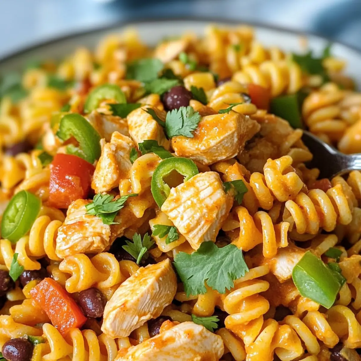 Hast du schon mal darüber nachgedacht, wie ein einfacher Pasta-Salat in ein Geschmackserlebnis verwandelt werden kann? Mein Würziger Hühnchen-Enchilada-Pasta-Salat ist die Antwort auf all deine Fragen nach dem perfekten Gericht für gesellige Abende oder ein entspanntes Familienessen. Diese kreative Fusion vereint die herzhaften Aromen klassischer Enchiladas mit der erfrischenden Leichtigkeit eines Pasta-Salats. Mit einer cremigen Enchilada-Sauce als Dressing ist er nicht nur ein echter Hingucker, sondern auch ein schnelles und kinderfreundliches Rezept, das sich ganz nach deinen Vorlieben anpassen lässt. Bereit, deine nächste Mahlzeit zu einem unvergesslichen Erlebnis zu machen? Lass uns gemeinsam in die Zubereitung eintauchen! Warum wirst du dieses Rezept lieben? Einfachheit: Die Zubereitung ist unkompliziert und erfordert keine besonderen Kochkenntnisse, perfekt für einen schnellen Feierabend. Vielseitigkeit: Du kannst die Zutaten ganz nach deinem Geschmack anpassen und variieren – sei es mit mehr Gewürzen oder zusätzlichen Gemüseoptionen. Familienfreundlich: Mit mildem Geschmack und anpassbaren Schärfegraden ist dieser Salat ideal für die ganze Familie, sogar für die Kleinen! Saisonale Frische: Die Verwendung frischer Zutaten, wie Mais und Koriander, bringt eine sommerliche Note in dein Gericht. Schnelle Zubereitung: In weniger als einer Stunde hast du ein köstliches, nahrhaftes Gericht auf dem Tisch, ideal für ein schnelles Abendessen oder eine Grillparty. Soziale Genuss: Dieser Salat eignet sich hervorragend als Hauptgericht oder Beilage bei Zusammenkünften und zieht garantiert alle Blicke auf sich. Zutaten für Würziger Hühnchen-Enchilada-Pasta-Salat Dieser Rezept ist nicht nur schnell zubereitet, sondern auch voller Aromen, die die ganze Familie begeistern werden! Hähnchenbrust – sorgt für Protein und herzhaften Geschmack; verwende gegrilltes oder vorgekochtes Hähnchen für eine schnellere Zubereitung. Taco-Gewürz – verleiht einen würzigen Kick; passe die Menge je nach gewünschtem Schärfegrad an. Olivenöl – verhindert das Ankleben beim Kochen; kann durch Pflanzenöl ersetzt werden, wenn gewünscht. Rote Enchilada-Sauce – der Schlüssel zum zesty Flavor, das den Salat prägt; die Version von Trader Joe’s wird empfohlen. Sauerrahm – sorgt für Cremigkeit und Reichtum; griechischer Joghurt kann als kalorienärmere Alternative verwendet werden. Limette – bringt Säure und Frische; achte darauf, den Saft vor dem Mischen auszupressen, um die besten Ergebnisse zu erzielen. Pasta (16 oz) – bildet die Basis des Salats; Rotini oder Ellbogen-Nudeln werden empfohlen; glutenfreie Pasta ist ebenfalls geeignet. Schwarze Bohnen – bieten Ballaststoffe und zusätzliches Protein; vor der Verwendung gründlich abspülen. Gelber Mais – bringt Süße und Textur; frischer Mais kann in der Saison verwendet werden. Rote Zwiebel – sorgt für Knackigkeit und scharfen Geschmack; kann durch Frühlingszwiebeln für eine mildere Note ersetzt werden. Jalapeño – sorgt für Schärfe; fein gehackt und in der Menge je nach Schärfetoleranz anpassen. Gehackte Oliven – optionale Garnitur, die einen salzigen Geschmack hinzufügt; schwarze Oliven oder das Weglassen sind möglich. Koriander – frisches Kraut zur Garnierung und Geschmacksverbesserung; kann durch Petersilie ersetzt werden, falls Koriander nicht verfügbar ist. Dieser Würziger Hühnchen-Enchilada-Pasta-Salat wird deine Familie und Freunde begeistern! Step-by-Step Instructions für Würziger Hühnchen-Enchilada-Pasta-Salat Step 1: Pfanne vorheizen Erhitze in einer großen Pfanne das Olivenöl bei mittlerer bis hoher Hitze. Achte darauf, dass das Öl heiß ist, bevor du das Hähnchen hinzufügst; es sollte leicht schimmern. Dieser Schritt dauert etwa 2-3 Minuten und sorgt dafür, dass das Hähnchen gleichmäßig gart und nicht anklebt. Step 2: Hähnchen würzen und kochen Die Hähnchenbrüste gleichmäßig mit Taco-Gewürz bestreuen und in die heiße Pfanne legen. Lasse das Hähnchen 5-7 Minuten pro Seite braten, bis es vollständig durchgegart ist und eine innere Temperatur von 75°C erreicht. Es sollte goldbraun und saftig sein. Step 3: Hähnchen abkühlen und würfeln Nachdem das Hähnchen gekocht ist, nimm es aus der Pfanne und lasse es 10 Minuten abkühlen. Sobald es abgekühlt ist, schneide es in 1,5 cm große Würfel. Dies erleichtert das Mischen in den Würziger Hühnchen-Enchilada-Pasta-Salat. Step 4: Dressing zubereiten In einer großen Schüssel die rote Enchilada-Sauce, den Sauerrahm und den Limettensaft gut vermischen, bis eine cremige, glatte Masse entsteht. Diese Sauce verleiht dem Salat den charakteristischen würzigen Geschmack und sorgt für eine reichhaltige Textur. Step 5: Zutaten kombinieren Füge die gewürfelten Hähnchenteile, die gekochte Pasta, die schwarzen Bohnen, den Mais, die rote Zwiebel, die Jalapeños und nach Belieben die Oliven zur Schüssel mit dem Dressing hinzu. Rühre alles vorsichtig um, bis die Pasta gleichmäßig mit der cremigen Sauce bedeckt ist. Step 6: Kühlen Decke die Schüssel ab und stelle den Würzigen Hühnchen-Enchilada-Pasta-Salat für mindestens eine Stunde in den Kühlschrank. Dadurch können sich die Aromen gut verbinden, und der Salat wird schön kühl. Step 7: Servieren Vor dem Servieren den Salat aus dem Kühlschrank nehmen und mit frischem Koriander garnieren. Dies fügt eine frische Note hinzu, die den ganzen Geschmack des Salats bereichert. Serviere den Salat als Hauptgericht oder Beilage bei deiner nächsten Mahlzeit. Lagerungstipps für Würziger Hühnchen-Enchilada-Pasta-Salat Zimmertemperatur: Der Salat sollte nicht länger als 2 Stunden bei Zimmertemperatur stehen, um die Frische der Zutaten zu gewährleisten. Kühlschrank: Im Kühlschrank hält sich der Würzige Hühnchen-Enchilada-Pasta-Salat bis zu 3 Tage. Am besten in einem luftdichten Behälter aufbewahren, um Austrocknen zu vermeiden. Gefrierschrank: Um die Haltbarkeit zu verläng