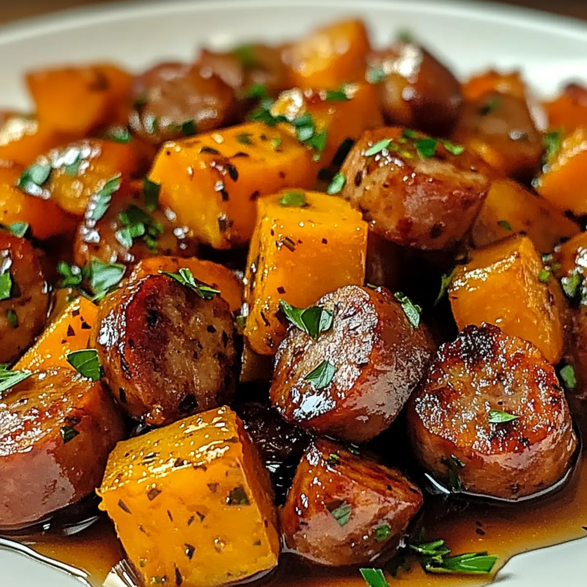 Absolut! Du kannst die Wurst durch Hähnchen, Pute oder sogar pflanzliche Alternativen ersetzen. Außerdem kann der Honig durch Ahornsirup ersetzt werden, um eine vegane Variante zu kreieren. Informiere dich auch über glutenfreie Sojasauce (Tamari) als Ersatz für das Rezept, um alle Genuss zu ermöglichen!