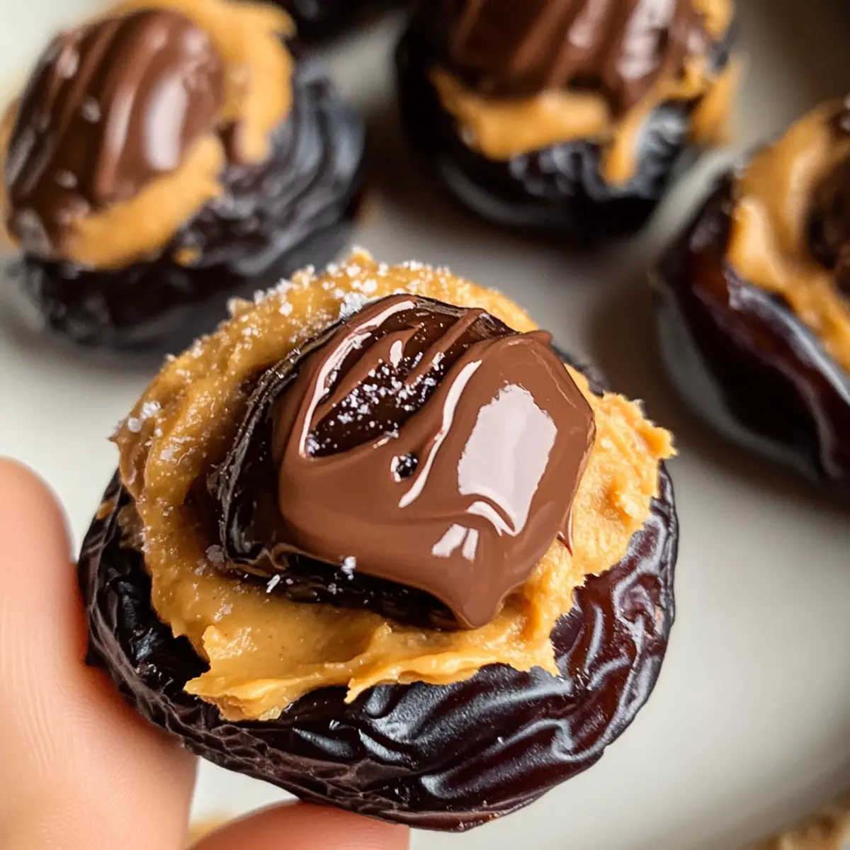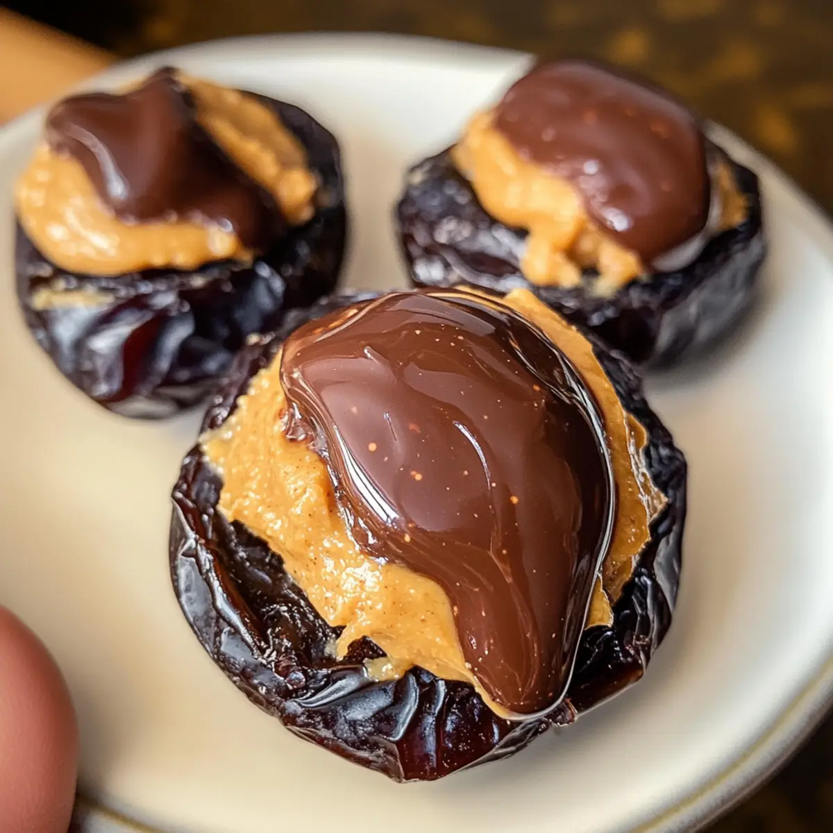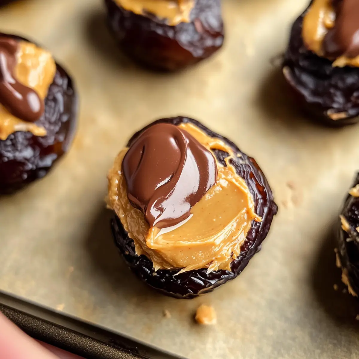 Hast du jemals darüber nachgedacht, wie du deine kleinen Snacks aufpeppen kannst? Mit nur drei einfachen Zutaten zauberst du im Handumdrehen zerschlagene Dattel Snickers, die sowohl gesund als auch köstlich sind. Diese Mischung aus süßen Medjool-Datteln, cremiger Erdnussbutter und schmelzendem Schokolade ist nicht nur vegan und glutenfrei, sondern auch perfekt für jeden, der eine schnelle und sättigende Nascherei möchte. Die Zubereitung ist kinderleicht und du musst nicht einmal den Ofen einschalten! Ob als Snack für zwischendurch oder als süßes Dessert—es gibt kaum einen Anlass, bei dem diese Leckerei nicht glänzt. Bist du bereit, deinem nächsten Snack etwas Süße zu verleihen? Warum sind zerschlagene Dattel Snickers so besonders? Einfachheit: Mit gerademal drei Zutaten ist die Zubereitung der zerschlagenen Dattel Snickers ein Kinderspiel! Perfekt für alle, die wenig Zeit haben, aber nicht auf Geschmack verzichten möchten. Gesunde Nascherei: Diese Leckerei ist nicht nur vegan und glutenfrei, sondern auch ein wahrer Energiespender—ideal für einen schnellen Snack oder ein süßes Dessert nach dem Essen. Vielfältigkeit: Probiere verschiedene Nuss- oder Samenbutter, um deinem Snack eine persönliche Note zu geben. Auch die Verwendung von weißer Schokolade sorgt für einen neuen Geschmacksakzent! Zeitersparnis: In nur 30 Minuten kannst du auch schon genießen—kein Backen nötig! Köstlicher Genuss: Die Kombination aus der süßen, zähen Dattel und der cremigen Erdnussbutter, überzogen mit schmelzender Schokolade, ist einfach unwiderstehlich. Diese geschmackliche Harmonie wird selbst die Schnellimbiss-Fans überzeugen! Zutaten für zerschlagene Dattel Snickers • Diese Zutatenliste hilft dir, diese köstlichen Snacks im Handumdrehen zuzubereiten! Für die Zubereitung Medjool-Datteln – sorgen für natürliche Süße und eine zähe Textur; du kannst sie durch getrocknete Feigen ersetzen, wenn sie nicht verfügbar sind. Ungesüßte Erdnussbutter – verleiht eine cremige Konsistenz und einen nussigen Geschmack; jede Nuss- oder Samenbutter kann als Ersatz verwendet werden. Geschmolzene Schokoladenstückchen – sorgen für einen reichen Schokoladengeschmack; verwende dunkle Schokolade für eine vegane Option oder milchfreie Schokoladenstückchen. Die zerschlagenen Dattel Snickers sind eine großartige, gesunde Nascherei, die du immer wieder variieren kannst! Schritt-für-Schritt-Anleitungen für Zerschlagene Dattel Snickers Step 1: Arbeitsfläche vorbereiten Bereite deinen Arbeitsplatz vor, indem du ein Backblech mit Backpapier auslegst. Dies wird verhindern, dass die zerschlagenen Dattel Snickers anhaften. Achte darauf, dass die Fläche sauber und gut beleuchtet ist, damit du alles gut sehen kannst, während du die Schritte ausführst. Step 2: Datteln entkernen Öffne vorsichtig jede Medjool-Dattel und entferne den Kern. Lege die Datteln anschließend flach und mit der geöffneten Seite nach oben auf das Backblech. Achte darauf, dass sie genügend Platz haben, damit du sie später besser zerschlagen kannst. Step 3: Datteln zerschlagen Nehme eine Gabel oder einen speziellen Stößel und drücke sanft auf jede Dattel, bis sie die gewünschte Dicke erreicht hat. Dies dauert nur ein paar Sekunden pro Dattel. Sie sollten zart und flach sein, damit die Aromen später gut durchdringen können. Step 4: Erdnussbutter auftragen Verteile gleichmäßig eine Schicht ungesüßte Erdnussbutter über die zerschlagenen Datteln. Verwende einen Teelöffel oder einen kleinen Spatel, um die Erdnussbutter glatt zu streichen. Achte darauf, dass du jede Dattel gut bedeckst, sodass die cremige Konsistenz später zur Geltung kommt. Step 5: Schokolade schmelzen In einem kleinen Topf oder in der Mikrowelle schmelze die Schokoladenstückchen, bis sie vollständig flüssig und glatt sind. Das dauert in der Mikrowelle etwa 30-60 Sekunden bei mittlerer Hitze, rühre dabei alle 15 Sekunden um. Achte darauf, dass die Schokolade nicht zu heiß wird, damit sie nicht verbrennt. Step 6: Schokolade träufeln Nehme die geschmolzene Schokolade und träufele sie gleichmäßig über die mit Erdnussbutter belegten Datteln. Verwende dafür einen Löffel oder spritze die Schokolade aus einem kleinen Beutel. Die Kombination aus zerschlagenen Dattel Snickers und geschmolzener Schokolade sollte gleichmäßig verteilt sein. Step 7: Kühlen und festigen Stelle das Backblech in den Kühlschrank oder das Gefrierfach und lasse die zerschlagenen Dattel Snickers etwa 30 Minuten lang ruhen, bis die Schokolade fest geworden ist. Überprüfe zwischendurch, ob die Schokolade fest ist, um sicherzugehen, dass sie perfekt für den Genuss vorbereitet ist. Step 8: Servieren und genießen Sobald die Schokolade hart geworden ist, kannst du die zerschlagenen Dattel Snickers in kleine Stücke schneiden oder einfach als ganze Portionen servieren. Ein leichter Spritzer Meersalz obenauf sorgt für einen zusätzlichen Geschmackskick. Jetzt sind sie bereit, genossen zu werden! Tipps für die besten zerschlagenen Dattel Snickers Die richtige Schokolade: Verwende hochwertigste Schokolade für das beste Aroma. Überprüfe, ob die Schokolade sich leicht schmelzen lässt, um eine glatte Textur zu erreichen. Erdnussbutter-Ruhe: Wenn du natürliche Erdnussbutter verwendest, rühre sie gut durch, damit sie sich leichter auftragen lässt und nicht krümelig bleibt. Zählsicher: Vermeide zu starkes Zerschlagen der Datteln, damit sie nicht zu matschig werden. Die Struktur sorgt für den perfekten Biss der zerschlagenen Dattel Snickers. Variationen ausprobieren: Experimentiere mit verschiedenen Nuss- oder Samenbutter und entdecke deine Lieblingskombination. Das macht deine zerschlagenen Dattel Snickers noch spannender! Kühlen ist wichtig: Stelle sicher, dass du die Snacks lange genug im Kühlschrank lässt, damit die Schokolade gut fest wird, bevor du sie servierst. Aufbewahrung und Einfrieren von zerschlagenen Dattel Snickers Kühlschrank: Bewahre d