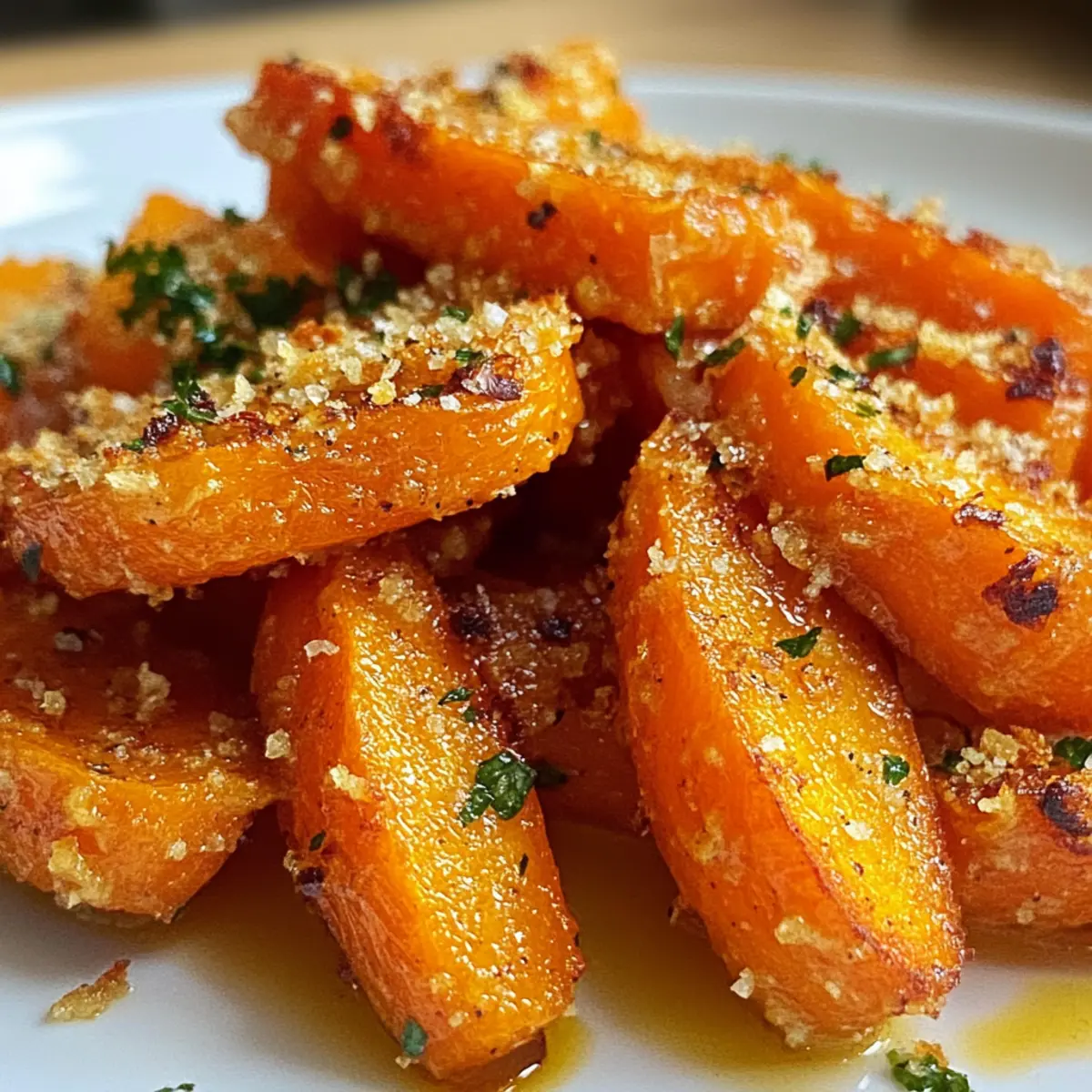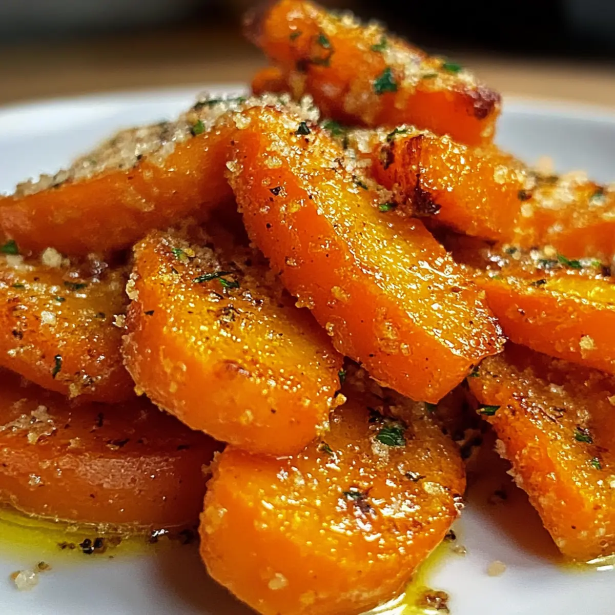 Ein aromatischer Duft zieht durch die Küche, während ich die Karotten vorbereite. Wenn du jemals nach einer gesunden Alternative zu frittierten Snacks gesucht hast, dann sind zerschlagene Karotten genau das Richtige für dich! Dieses Rezept verwandelt zarte, gekochte Karotten in knusprige, goldene Bissen, die nicht nur gut aussehen, sondern auch köstlich schmecken. Diese multifunktionale Beilage ist glutenfrei, vegetarisch und sogar für die Keto-Diät geeignet – perfekt, um deine Mahlzeiten aufzupeppen. Und das Beste? Sie sind einfach zuzubereiten und lassen sich nach Belieben anpassen, sodass jeder die Aromen findet, die er liebt. Wie wäre es mit einem kleinen Geschmacksexperiment? Warum wirst du zerschlagene Karotten lieben? Einfachheit, die begeistert: Die Zubereitung ist kinderleicht und benötigt keine speziellen Kochkünste, sodass sie für jeden zugänglich ist. Vielfalt der Aromen: Du kannst sie nach Lust und Laune mit verschiedenen Kräutern und Gewürzen verfeinern—von frischem Thymian bis zu scharfem Cayennepfeffer. Knuspriger Genuss: Die Kombination aus zartem Inneren und knusprigen Rändern sorgt für ein einzigartiges Geschmackserlebnis, das jeden begeistert. Gesunde Wahl: Ideal für alle, die auf glutenfreie, vegetarische oder keto-freundliche Optionen achten. Serviere sie als gesunden Snack oder Beilage zu deinem Lieblingsgericht! Schnell gemacht: Mit nur wenigen Zutaten und einer kurzen Zubereitungszeit sind diese zerschlagenen Karotten die perfekte Lösung, wenn du wenig Zeit hast. Zerschlagene Karotten Zutaten Karotten – die Hauptzutat, die natürliche Süße und Textur liefert; für mehr Farbvariation kannst du Regenbogenkarotten verwenden. Olivenöl – sorgt für Reichtum und hilft dabei, die knusprigen Ränder zu erreichen; jede pflanzliche Ölvariante funktioniert ebenso gut, verwende eine vegane Option für ein milchfreies Gericht. Salz – hebt die Aromen hervor und balanciert die Süße; passe die Menge nach deinem Geschmack an. Pfeffer – bringt eine Spur Schärfe und Tiefe; du kannst auch andere Gewürze wie Paprika oder Knoblauchpulver einsetzen, um verschiedene Geschmacksrichtungen zu erkunden. Kräuter/Gewürze (optional) – passe die Aromen an; frischer Thymian, Rosmarin oder Kreuzkümmel sind wunderbare Optionen; frische Kräuter ergeben einen helleren Geschmack, während getrocknete Kräuter intensiver wirken. Schritt-für-Schritt-Anleitung für Zerschlagene Karotten Step 1: Karotten vorbereiten Wasche die Karotten gründlich und schäle sie nach Belieben. Schneide sie in Hälften oder Viertel, damit sie gleichmäßig garen. Achte darauf, dass die Stücke eine ähnliche Größe haben, um ein gleichmäßiges Kochen zu gewährleisten. Stelle sicher, dass du ein scharfes Messer und ein Schneidebrett verwendest. Step 2: Kochen oder Dämpfen Koche die Karotten in sprudelndem Wasser oder dämpfe sie etwa 10-15 Minuten lang, bis sie gerade zart sind. Du kannst die Garprobe machen, indem du mit einer Gabel hineinsteckst; sie sollten leicht durchgängig sein, aber nicht zu weich. Wenn sie fertig sind, lasse das Wasser ab und lasse die Karotten kurz abkühlen. Step 3: Zerschlagen Lege die gekochten Karotten auf ein Schneidebrett und benutze einen Kartoffelstampfer oder eine Gabel, um sie leicht zu zerdrücken. Ziel ist es, eine größere Oberfläche zu schaffen, die beim Rösten knusprig wird. Achte darauf, die Karotten nicht zu zerdrücken, sondern nur sanft platt zu drücken. Step 4: Würzen und Beträufeln Platziere die zerschlagenen Karotten auf einem Backblech und träufle Olivenöl darüber. Streue großzügig Salz, Pfeffer und deine Wahl an Kräutern oder Gewürzen über die Karotten. Mische alles gut, damit die Karotten gleichmäßig gewürzt sind. Achte darauf, dass die Karotten genügend Platz haben, um beim Rösten knusprig zu werden. Step 5: Rösten Heize den Ofen auf 220 °C (425 °F) vor und schiebe das Backblech mit den Karotten hinein. Röste sie 20-25 Minuten lang, bis die Ränder goldbraun und knusprig sind. Wende die Karotten nach der Hälfte der Zeit, damit sie gleichmäßig garen und sich überall eine schöne goldene Farbe bildet. Step 6: Warm servieren Nimm das Backblech aus dem Ofen und lass die zerschlagenen Karotten einige Minuten abkühlen. Serviere sie warm, um die beste Textur und den besten Geschmack zu genießen. Diese zerschlagenen Karotten sind eine köstliche und gesunde Beilage zu deinen Lieblingsgerichten oder auch ein schmackhafter Snack. Zubereitung von zerschlagenen Karotten im Voraus Zerschlagene Karotten sind ideal für die Vorausplanung! Du kannst die Karotten bis zu 24 Stunden im Voraus vorbereiten, indem du sie wäschst, schälst und schneidest. Koche sie dann und lasse sie abkühlen, bevor du sie in einem luftdichten Behälter im Kühlschrank aufbewahrst. So bleiben sie frisch und vermeiden ein Austrocknen. Am Tag der Zubereitung musst du lediglich die Karotten zerdrücken, würzen und sie im vorgeheizten Ofen bei 220 °C (425 °F) für 20-25 Minuten rösten, bis sie knusprig sind. Diese einfache Vorbereitung spart dir wertvolle Zeit an hektischen Tagen und sorgt trotzdem dafür, dass deine zerschlagenen Karotten einfach köstlich schmecken! Tipps für die besten zerschlagenen Karotten Einheitliche Größe: Achte darauf, dass die Karotten gleich groß geschnitten sind, damit sie gleichmäßig kochen. Kleinere Stücke könnten schneller garen und matschig werden. Richtig zerschlagen: Sei vorsichtig beim Zerschlagen der Karotten. Du möchtest sie sanft zerdrücken, um eine größere Oberfläche für das Rösten zu schaffen, aber nicht pürieren. Überwachen beim Rösten: Beobachte die Karotten während des Röstens genau, um ein Verbrennen zu vermeiden. Knusprige Ränder sind toll, aber das Innere sollte zart bleiben. Öl richtig verwenden: Träufle genügend Olivenöl über die Karotten, um eine schöne, knusprige Textur zu erzielen. Zu wenig Öl kann sie trocken machen. Variationen ausprobieren: Experiment