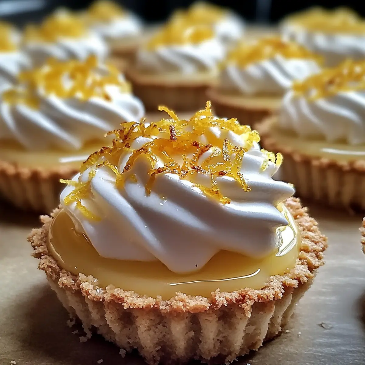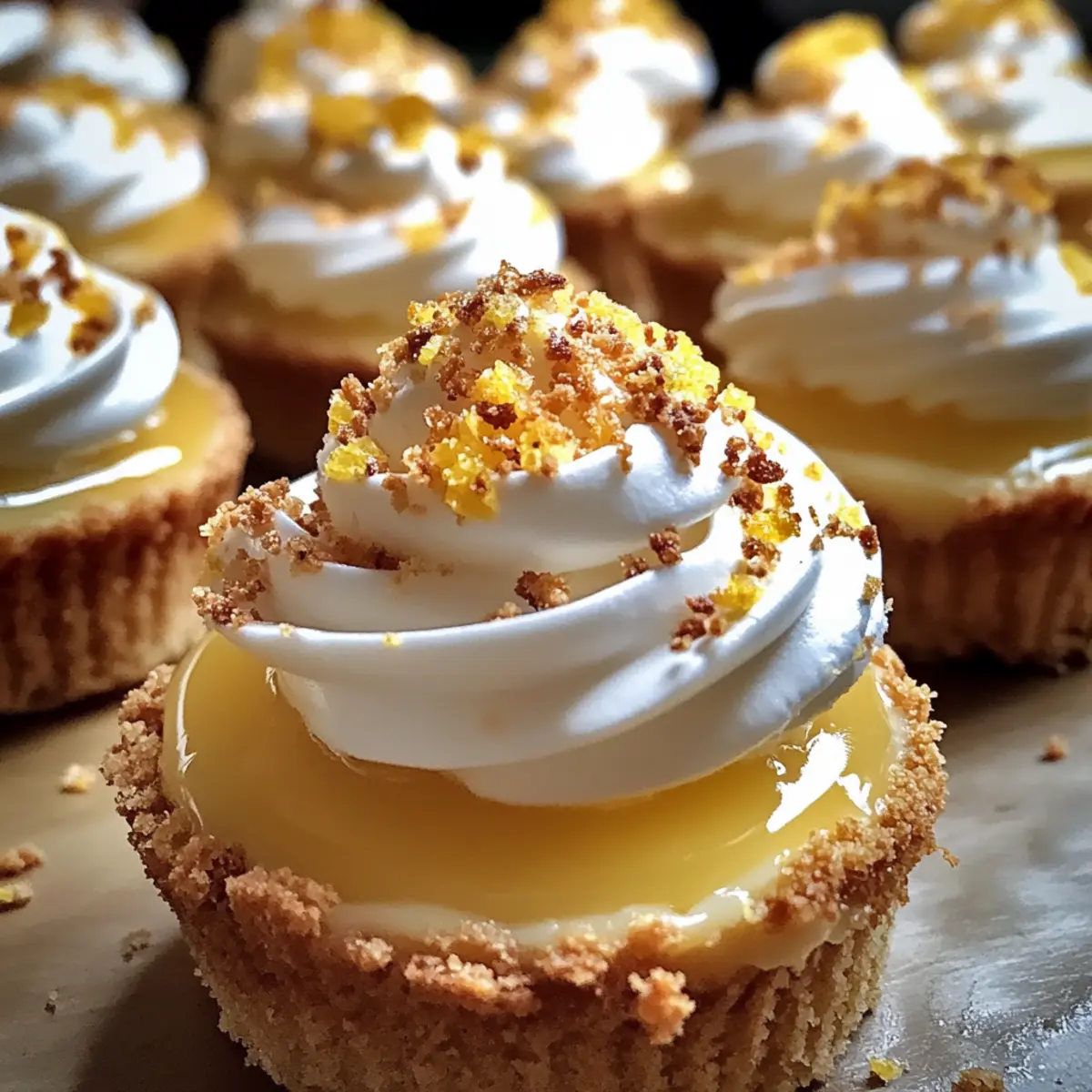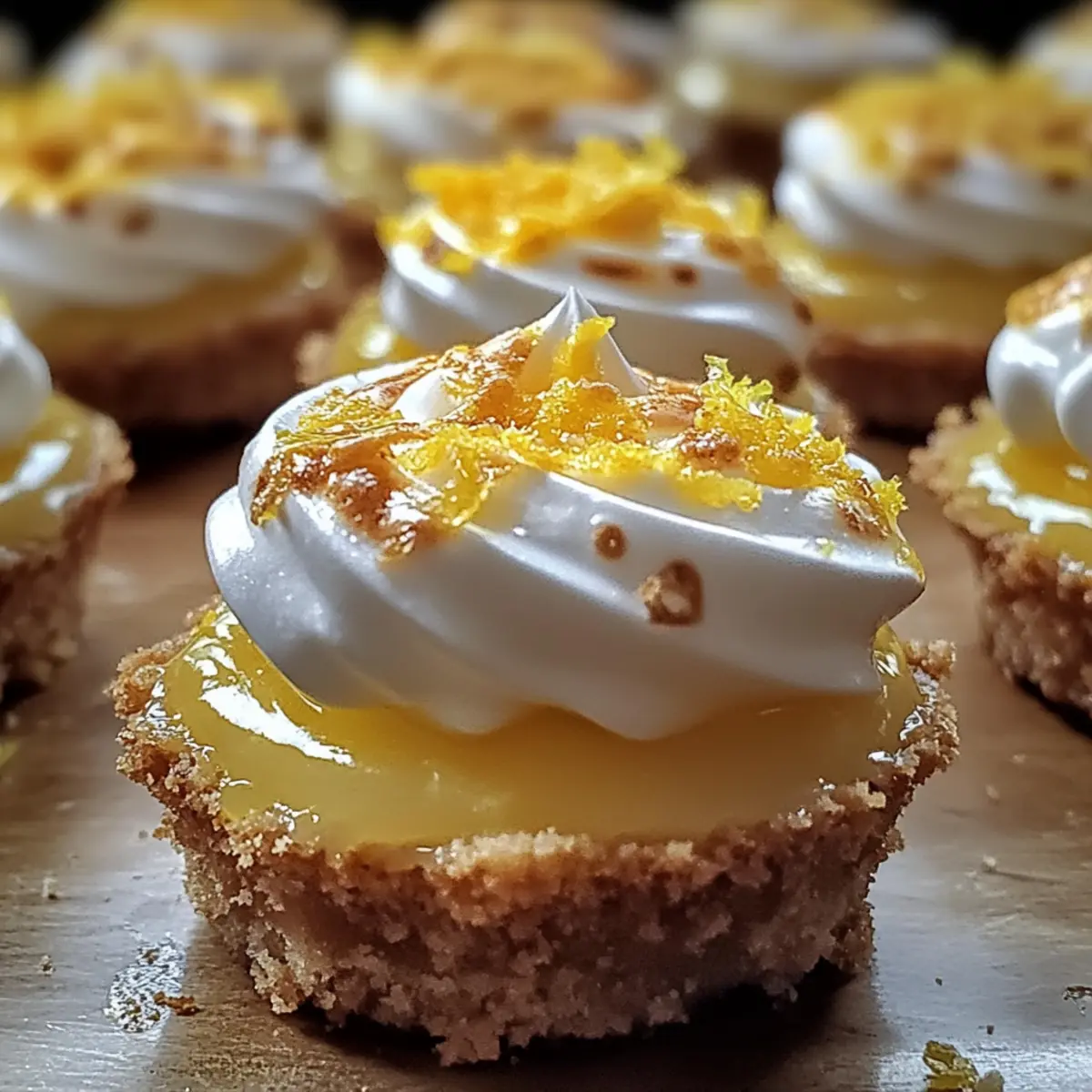 Die frische, spritzige Note von Zitrone und die luftige Süße der Baiserhaube erinnern mich immer an sonnige Nachmittage im Garten. Heute lade ich euch ein, einen köstlichen Zesty Zitronen-Baiser-Käsekuchen zuzubereiten, der nicht nur optisch begeistert, sondern auch eure Geschmacksknospen verführt. Diese miniaturisierten Köstlichkeiten sind in nur 30 Minuten vorbereitet – perfekt für spontane Dessertlaunen oder um eure Gäste bei besonderen Anlässen zu beeindrucken. Mit einer harmonischen Kombination aus cremigem Käsekuchen, einem knackigen Keksboden und dem leichten Baiser wird das Backen zu einem Genuss. Neugierig, wie dieser zarte Leckerbissen auf die Teller kommt? Lasst uns gemeinsam in die Zubereitung eintauchen! Warum wirst du dieses Dessert lieben? Vielfältigkeit: Diese Zesty Zitronen-Baiser-Käsekuchen sind nicht nur köstlich, sondern auch anpassbar! Füge pürierte Beeren hinzu oder verwandele sie in schokoladige Leckerbissen, um deinen persönlichen Stil zu zeigen. Schnelle Zubereitung: In nur 30 Minuten hast du diese miniaturisierten Köstlichkeiten zauberhaft zubereitet, perfekt für unerwartete Gäste oder einen süßen Genuss nach dem Abendessen. Impression garantiert: Mit ihrem eindrucksvollen Aussehen und dem spürbaren Zitronengeschmack sind sie der Hit auf jeder Feier oder beim Sommerpicknick. Du möchtest noch mehr spannende Dessertideen ausprobieren? Für weitere Inspirationen schau dir unsere drei schnelle Dessertrezepte an! Einfachheit: Trotz der eleganten Präsentation erfodert das Rezept nur grundlegende Backkenntnisse und ist leicht umsetzbar. Frischer Geschmack: Der zesty Zitronengeschmack wird durch die leichte Baiserhaube perfekt ergänzt und sorgt für ein unvergessliches Geschmackserlebnis. Aromavariationen: Experimentiere mit verschiedenen Zitrusfrüchten oder ergänze deine Kreation mit einem Hauch von Vanille. Diese Kleinigkeiten bieten eine Vielzahl von Möglichkeiten für jeden Geschmack! Zesty Zitronen-Baiser-Käsekuchen Zutaten Für den Keksboden Zerkleinerte Graham Cracker – sorgen für eine süße, knusprige Basis; glutenfreie Kekse sind eine tolle Alternative. Geschmolzene Butter – bindet den Boden für eine kompakte Textur; darauf achten, dass sie vollständig geschmolzen ist. Flockiges Salz – hebt die Aromen des Bodens hervor und balanciert die Süße aus; grobes Salz funktioniert ebenfalls gut. Für die Käsekuchenfüllung Weiche Frischkäse – das Herzstück; für eine cremige Füllung sollte er Zimmertemperatur haben. Zucker – süßt die Füllung; für ein einzigartiges Aroma kann man auch Ahornsirup verwenden. Zitronenschale – bringt eine lebendige Zitrusnote; frisch gerieben von reifen Zitronen ist ideal. Mehl – sorgt für Stabilität in der Füllung; eine glutenfreie Mischung ist ebenfalls möglich. Sauerrahm – trägt zu einer glatten Textur und leichten Säure bei; bei Bedarf kann auch eine milchfreie Alternative genommen werden. Vanilleextrakt – bereichert die Geschmacksvielfalt; besser ist reiner Extrakt. Frischer Zitronensaft – essenziell für das ideale Gleichgewicht zwischen Süße und Säure; frisch gepresst wird empfohlen. Für das Baiser Eiklar – entscheidend für ein luftiges Baiser; bei Zimmertemperatur schlagen, um bessere Ergebnisse zu erzielen. Zucker (für Baiser) – süßt das Baiser; superfiner Zucker sorgt für eine bessere Textur. Salz (für Baiser) – hebt den Geschmack des Baisers; ein Prise reicht aus. Weinstein – stabilisiert die Eiweiße beim Schlagen; kann durch Zitronensaft ersetzt werden. Schritt-für-Schritt-Anleitung für Zesty Zitronen-Baiser-Käsekuchen Step 1: Ofen vorheizen Heize deinen Ofen auf 160°C vor und bereite ein Muffinblech mit 12 Papierförmchen vor. Dies sorgt dafür, dass die kleinen Zitronen-Baiser-Käsekuchen gleichmäßig gebacken werden und die Förmchen das Herausnehmen erleichtern. Step 2: Keksboden zubereiten Vermische die zerkleinerten Graham Cracker, die geschmolzene Butter und das flockige Salz in einer Schüssel. Verteile die Mischung gleichmäßig in den Muffinförmchen und drücke sie fest zusammen. Backe den Boden für 5 Minuten, bis er leicht goldbraun ist, und lasse ihn anschließend vollständig auskühlen. Step 3: Käsekuchenfüllung vorbereiten Mische den weichen Frischkäse in einer großen Schüssel mit einem Handmixer, bis er schön cremig ist. Füge dann den Zucker, die Zitronenschale, das Mehl, den Sauerrahm, den Vanilleextrakt und den frischen Zitronensaft hinzu. Rühre alles gut durch, bis die Mischung leicht und fluffig ist. Step 4: Förmchen füllen Spoon die Käsekuchenfüllung gleichmäßig in die vorbereiteten Keksböden bis etwa zwei Drittel voll. Backe die Zesty Zitronen-Baiser-Käsekuchen für 18-20 Minuten, bis sie größtenteils fest sind. Lasse sie bei Raumtemperatur abkühlen und stelle sie dann für mindestens 3 Stunden in den Kühlschrank, um sie zu festigen. Step 5: Baiser zubereiten Schlage die Eiklar in einer Metallschüssel über einem Wasserbad zusammen mit dem Zucker, dem Salz und dem Weinstein, bis er eine Temperatur von 71°C (160°F) erreicht hat. Danach mit einem Handmixer auf hoher Stufe weiterschlagen, bis sich glänzende Spitzen bilden. Dies verleiht dem Baiser eine luftige Konsistenz. Step 6: Meringue zusammenstellen und bräunen Verteile das luftige Baiser über die gekühlten Zitronen-Baiser-Käsekuchen und belege sie nach Belieben, indem du einen Spritzbeutel verwendest oder das Baiser einfach verstreichst. Verwende einen Küchenbrenner, um die Oberseite leicht zu bräunen, bis sie goldbraun ist. Achte dabei darauf, sie gleichmäßig zu erwärmen, um ein Anbrennen zu vermeiden. Tipps für den besten Zesty Zitronen-Baiser-Käsekuchen Kühlzeit beachten: Lass die Käsekuchen mindestens 3 Stunden im Kühlschrank ruhen, um die ideale Textur zu erreichen. Zu frühes Servieren kann die Konsistenz beeinträchtigen. Füllung nicht übermixen: Vermeide es, die Käsekuchenfüllung zu stark zu mixen. Ein sanftes 