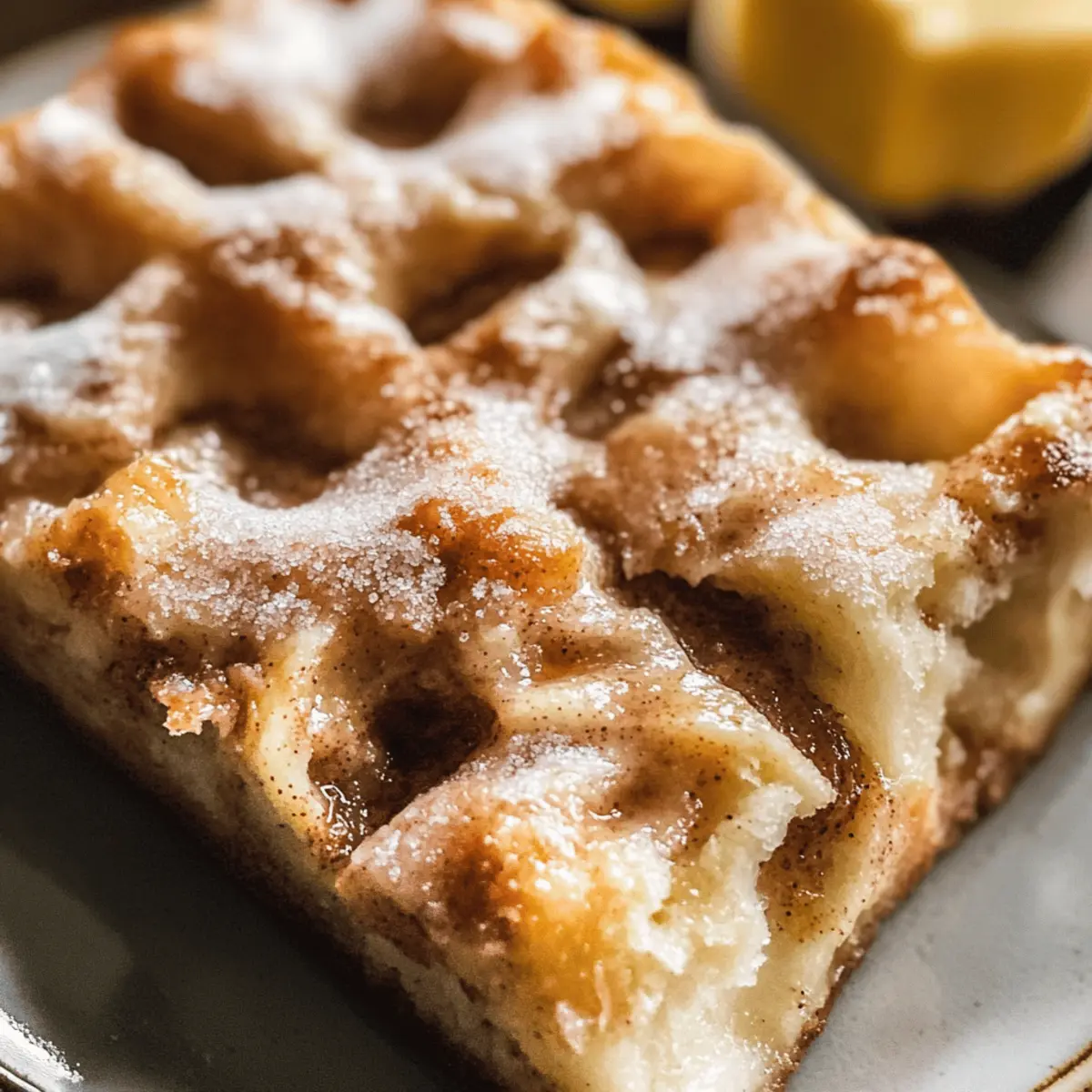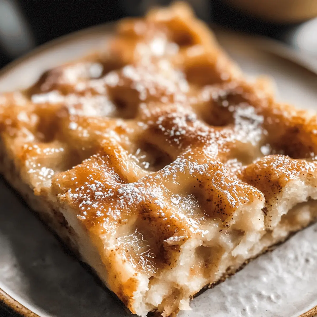 Einen verführerischen Duft, der aus der eigenen Küche strömt und Erinnerungen an gemütliche Nachmittage weckt – genau das erlebe ich jedes Mal, wenn ich meine Zimt Focaccia backe. Diese fluffige, warme Brotvariation ist der perfekte Kompromiss zwischen einem klassischen Zimtschnecken und einem unkomplizierten Hefeteig. Mit ihm genießt man die für seine goldbraunen, knusprigen Ränder bekannten Aromen, während der Zimt-Zucker-Kern bei der Zubereitung im Ofen leicht karamellisiert. Perfekt für ein entspanntes Brunch oder als süße Belohnung am Nachmittag stellt die Zimt Focaccia nicht nur einen Gaumenschmaus dar, sondern ist auch kinderleicht zuzubereiten. Neugierig, wie man dieses Gebäck mit einer köstlichen braunen Butterglasur verfeinern kann? Warum wirst du diese Zimt Focaccia lieben? Einfachheit in der Zubereitung: Diese Rezeptur erfordert keine speziellen Backfähigkeiten, sodass du in kürzester Zeit zum Erlebnis von frisch duftender Focaccia gelangst. Süßer Genuss: Der warme Zimt und der karamellisierte Zucker schaffen ein himmlisch süßes Geschmackserlebnis, das jeder lieben wird. Vielfältige Verwendung: Ob als besonderes Frühstück, süßes Dessert oder einfach nur zum Snacken – diese Focaccia passt zu jedem Anlass. Aromatischer Höhepunkt: Die Kombination von brauner Butter und Zimt fügt eine nussige Tiefe hinzu, die deinem Gaumen schmeichelt. Einfach zu variieren: Probiere verschiedene Zuckerglasuren oder füge zusätzliche Gewürze hinzu, um deine persönliche Note einzubringen. Für weitere Inspiration schau dir unser Cremige Ricotta Hühnchen Rezept an oder vielleicht das Thai Erdnuss Hühnchen für ein herzhaftes Gericht. Zimt Focaccia Zutaten Für den Teig: Warmes Wasser – aktiviert die Hefe für den perfekten Teig. Achte darauf, dass das Wasser etwa 43°C hat. Aktive Trockenhefe – essenziell für das Aufflackern des Teiges. Lass sie nach dem Mischen mit warmem Wasser und Zucker für 10-15 Minuten schäumen. Kristallzucker – gibt der Hefe Nahrung und unterstützt deren Aktivierung. Brotmehl – sorgt für Stabilität und Biss der Focaccia. Du kannst auch Allzweckmehl verwenden, aber das Ergebnis kann variieren. Salz – hebt den Geschmack des Teiges hervor. Olivenöl – sorgt für Feuchtigkeit und Reichtum im Teig. Ungesalzene Butter – wird zum Einfetten verwendet und fügt Geschmack hinzu. Für die Füllung: Braune Butter – verleiht der Füllung einen nussigen Geschmack. Wichtig für einen reichhaltigen, dekadenten Genuss. Heller Rohrzucker – sorgt für Süße und hilft beim Karamellisieren mit dem Zimt. Zimt – gibt das charakteristische, warme Gewürzaroma. Für die Glasur: Puderzucker – für die Vanilleglasur, um Süße und Geschmeidigkeit hinzuzufügen. Vanilleextrakt – sorgt für einen aromatischen, süßen Geschmack in der Glasur. Milch – dient zum Anpassen der Konsistenz der Glasur für die optimale Spritzfähigkeit. Gönn dir diese köstliche Zimt Focaccia, die nicht nur einfach zuzubereiten ist, sondern auch einen wunderbar süßen Genuss bietet! Step-by-Step Instructions for Zimt Focaccia Step 1: Hefe aktivieren Vermische in einer Schüssel das warme Wasser mit dem Kristallzucker und bestreue es mit der aktiven Trockenhefe. Lass die Mischung für 10-15 Minuten stehen, bis sie schaumig wird und sich Blasen bilden. Dies zeigt an, dass die Hefe aktiv ist und bereit, den Teig für die Zimt Focaccia aufgehen zu lassen. Step 2: Teig mischen In einer großen Schüssel vermenge das Brotmehl und das Salz. Füge die schaumige Hefe-Mischung sowie das Olivenöl hinzu und rühre, bis ein klebriger Teig entsteht. Achte darauf, dass alle Zutaten gut vermischt sind. Öle die Oberfläche des Teigs leicht ein, damit er beim Aufgehen nicht austrocknet. Step 3: Erste Ruhezeit Decke die Schüssel mit einem sauberen Küchentuch ab und stelle sie für mindestens 12 Stunden in den Kühlschrank. Diese kalte Ruhezeit ermöglicht es dem Teig, langsam zu arbeiten und Aromen zu entwickeln, wodurch die Zimt Focaccia nach dem Backen luftiger wird. Step 4: Zweite Ruhezeit Bereite eine Backform vor, indem du sie mit geschmolzener ungesalzener Butter einfettest. Nimm den Teig aus dem Kühlschrank, drücke ihn leicht zusammen, um die Luft herauszulassen, und lege ihn in die vorbereitete Form. Decke den Teig wieder ab und lass ihn 1,5 bis 2 Stunden an einem warmen Ort aufgehen, bis er sich verdoppelt hat. Step 5: Braune Butter zubereiten Schmelze die ungesalzene Butter in einem kleinen Topf bei mittlerer Hitze, bis sie goldbraun und nussig riecht. Dies dauert etwa 5-7 Minuten. Füge anschließend den hellen Rohrzucker und den Zimt hinzu. Rühre die Mischung gut um, bis sich alles verbunden hat, und stelle sie beiseite. Step 6: Teig eindrücken Heize deinen Ofen auf 230°C vor. Nachdem der Teig aufgegangen ist, drücke mit den Fingerspitzen sanft in die Oberfläche des Teigs, um kleine Vertiefungen zu schaffen. Gieße die Zimt-Bohnenbutter-Mischung gleichmäßig über den Teig und lasse sie in die Vertiefungen eindringen. Step 7: Backen Backe die Zimt Focaccia etwa 20-25 Minuten lang im vorgeheizten Ofen, bis sie goldbraun ist und die Ränder knusprig werden. Die Oberseite sollte schön karamellisiert sein und der Duft wird deinen Raum durchziehen. Nach dem Backen lasse die Focaccia 10 Minuten in der Form abkühlen. Step 8: Glasur vorbereiten In einer kleinen Schüssel mische den Puderzucker mit der Milch und dem Vanilleextrakt, bis eine glatte Glasur entsteht. Achte darauf, dass sie die richtige Konsistenz hat, um sie leicht zu träufeln. Drizzle die Glasur großzügig über die warme Zimt Focaccia, während sie noch leicht warm ist, bevor du sie in Stücke schneidest. Lagerungstipps für Zimt Focaccia Raumtemperatur: Bewahre die Zimt Focaccia in einem luftdichten Behälter bei Zimmertemperatur für bis zu 2 Tage auf. So bleibt die Oberseite schön weich und die Aromen frisch. Kühlschrank: Solltest du in einer warmen Umgebung wohnen, lagere die Focaccia im