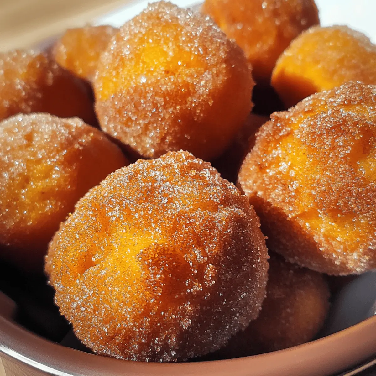 Mit einem ersten Biss in diese Zimt Zucker Kürbis Donut Löcher werde ich sofort in die gemütliche Atmosphäre des Herbstes versetzt. Warum? Weil der Duft von frisch gebackenem Kürbis und aromatischen Gewürzen durch die Küche zieht und einfach unwiderstehlich ist. Diese vier Zutaten verwandeln sich binnen 16 Minuten in himmlisch leichte und fluffige Leckereien, die nicht nur schnell zubereitet sind, sondern auch eine gesunde Alternative zu herkömmlichen Donuts bieten – ideal für alle, die beim Naschen auf ihren Zuckerkonsum achten. Ein wenig knusprig außen und wunderbar weich innen, sind sie die perfekte Kombination, um sich an einem kühlen Nachmittag mit einer Tasse Kaffee zu verwöhnen. Bist du bereit, dir diese Herbstfreude zu gönnen? Warum sind diese Donut Löcher einzigartig? Einfachheit: Mit nur vier Zutaten ist dieses Rezept kinderleicht und benötigt keine besonderen Kochkenntnisse. Gesunde Alternative: Diese Zimt Zucker Kürbis Donut Löcher sind nicht nur schnell zaubert, sie enthalten auch wenig Zucker und nutzen die natürliche Süße von Ahornsirup. Vielseitigkeit: Ob im Airfryer, Frittiergerät oder Ofen – du kannst die Zubereitung nach deinen Vorlieben anpassen. Wärmt das Herz: Die Kombination aus Kürbispüree und Pumpkin Pie Spice bringt den Geschmack des Herbstes direkt in deine Küche. Perfekte Textur: Außen leicht knusprig und innen fluffig – diese Donut Löcher werden bei jedem Biss für Begeisterung sorgen. Probiere sie einfach aus und genieße die Aromen des Herbstes! Zimt Zucker Kürbis Donut Löcher Zutaten Für den Teig • Kürbispüree – sorgt für Feuchtigkeit und Geschmack; verwende vorzugsweise ungesüßtes aus der Dose. • Ahornsirup – bietet natürliche Süße und Reichhaltigkeit; kann alternativ durch Honig oder Agavendicksaft ersetzt werden. • Pumpkin Pie Spice – bringt eine warme, würzige Note; du kannst deine eigene Mischung aus Zimt, Ingwer, Muskatnuss, Piment und Nelken herstellen. • Selbsttreibendes Mehl – schafft eine luftige Struktur; ersetze es durch Allzweckmehl und füge 1 Teelöffel Backpulver und etwas Salz hinzu. Für die Beschichtung • Zucker – für die Beschichtung nach dem Kochen, verstärkt die Süße und Textur; ein Must-Have für die Zimt Zucker Kürbis Donut Löcher. Zum Frittieren • Avocadoöl – sorgt für Feuchtigkeit und Bindung; kann auch durch Kokosöl ersetzt werden. Schritt-für-Schritt-Anleitung für Zimt Zucker Kürbis Donut Löcher Step 1: Teig herstellen In einer großen Schüssel das Kürbispüree, den Ahornsirup und 1 Teelöffel Pumpkin Pie Spice gut vermengen. Rühre kräftig, bis eine gleichmäßige Masse entsteht. Achte darauf, dass keine Klumpen mehr vorhanden sind. Dies sollte etwa 2 Minuten in Anspruch nehmen. Step 2: Mehl einarbeiten Füge das selbsttreibende Mehl zur Kürbismischung hinzu und rühre, bis der Teig krümelig aber gut verbunden ist. Mische mit deinen Händen weiter, bis ein klebriger Ball entsteht, der sich leicht formen lässt. Dies sollte etwa 3-4 Minuten dauern, bis der Teig zusammenhält. Step 3: Teig portionieren Teile den Teig in 10 gleichmäßige Portionen auf und forme jede Portion zu einer kleinen Kugel. Du kannst deine Hände leicht ölen, um das Kleben zu verhindern. Die Kugeln sollten gleichmäßig und rund sein, damit sie beim Frittieren gleichmäßig garen. Step 4: Airfryer vorbereiten Besprühe den Korb deines Airfryers mit einer Antihaft-Spray, um ein Anhaften der Zimt Zucker Kürbis Donut Löcher zu verhindern. Lege die Teigkugeln vorsichtig hinein und achte darauf, dass sie sich nicht berühren, um ein gleichmäßiges Garen zu ermöglichen. Step 5: Frittieren Stelle die Temperatur deines Airfryers auf 177°C (350°F) ein und frittiere die Donut Löcher für 6 Minuten. Der Teig sollte sich leicht goldbraun verfärben und beim Drücken fluffig wirken. Überprüfe nach der Zeit, ob sie gut durchgegart sind. Step 6: Zimt-Zucker-Mischung vorbereiten Während die Donut Löcher frittieren, mische den Zucker mit dem restlichen Pumpkin Pie Spice in einer kleinen Schüssel. Diese Mischung wird den Zimt Zucker Geschmack perfekt unterstreichen und die Außenseite der Donut Löcher verfeinern. Step 7: Donut Löcher beschichten Sobald die Zimt Zucker Kürbis Donut Löcher fertig sind, nimm sie vorsichtig aus dem Airfryer und pinsle sie leicht mit etwas Öl ein. Rolle die warmen Donut Löcher sofort in der Zimt-Zucker-Mischung, sodass sie gleichmäßig beschichtet sind. Step 8: Servieren Serviere die Donut Löcher warm, um die beste Textur und den Geschmack zu genießen. Sie sind eine perfekte süße Leckerei für einen gemütlichen Nachmittag und passen hervorragend zu einer Tasse Kaffee oder Tee. Perfekte Vorbereitung für Zimt Zucker Kürbis Donut Löcher Diese Zimt Zucker Kürbis Donut Löcher eignen sich hervorragend für die Vorbereitung im Voraus! Du kannst den Teig bis 24 Stunden im Voraus zubereiten und in Frischhaltefolie im Kühlschrank aufbewahren, um ihn frisch zu halten. Achte darauf, die Kugeln vor dem Frittieren leicht anzufetten, um das Ankleben zu verhindern. Wenn du bereit bist, sie zuzubereiten, forme einfach die Kugeln und frittiere sie in deinem Airfryer für 6 Minuten bei 177°C (350°F). So hast du im Handumdrehen köstliche, frisch gebackene Donut Löcher, die perfekt in deinen hektischen Alltag passen, ohne dabei an Qualität zu verlieren! Aufbewahrungstipps für Zimt Zucker Kürbis Donut Löcher Zimmertemperatur:: Am besten genießen, solange sie frisch sind. Bei Raumtemperatur können sie bis zu 2 Stunden aufbewahrt werden. Kühlschrank:: Wenn du Reste hast, lagere die Donut Löcher in einem luftdichten Behälter im Kühlschrank für bis zu 2 Tage, um ihre Frische zu bewahren. Einfrieren:: Für längere Lagerung, Friere die Donut Löcher in einem luftdichten Gefrierbeutel ein. Sie können bis zu 3 Monate aufbewahrt werden, gut verpackt, um Gefrierbrand zu vermeiden. Wiederaufwärmen:: Zum Aufwärmen, die gefrorenen Donut Löcher 