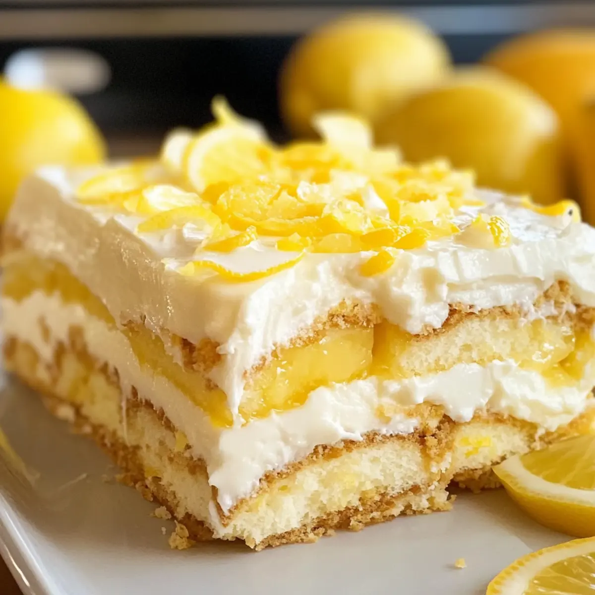 Ein Duft von frischem Zitronenbäumchen weht durch meine Küche und erinnert mich an laue Sommertage. Während ich die Zutaten für mein Zitronen-Tiramisu vorbereite, könnte ich nicht aufgeregter sein über diese erfrischende Abwandlung eines italienischen Klassikers. Mit seiner cremigen Mascarpone-Schicht, umgeben von zarten, zitronengetränkten Löffelbiskuits, bringt dieses no-bake Dessert genau die richtige Portion Frische und Leichtigkeit, die jedes Festmahl bereichert – sei es zu Ostern oder bei einem sommerlichen BBQ. Ideal vorzubereiten und ein absoluter Hingucker auf jeder Desserttorte, wird dieses Zitronen-Tiramisu nicht nur Gaumenfreuden bescheren, sondern auch die Herzen Ihrer Gäste erobern. Bereit, Ihre Geheimwaffe für die nächste Feier zu entdecken? Warum wird dieses Rezept zum Sommerhit? Erfrischend und leicht: Dieses Zitronen-Tiramisu vereint die perfekte Balance aus frischem Zitrusgeschmack und cremiger Textur, ideal für heiße Sommertage. Keine Backzeit: Dank der No-Bake Zubereitung ist es schnell und unkompliziert – perfekt für spontane Einladungen! Vielseitig: Ob bei einem BBQ oder als krönender Abschluss eines Festessens, dieses Dessert passt zu jeder Gelegenheit. Auge und Gaumen: Die ansprechende Präsentation mit frischer Zitronenzeste und eventuell kandierten Limetten macht es zum Hingucker! Vorbereitung leicht gemacht: Sie können es sogar einen Tag im Voraus zubereiten, um mehr Zeit mit Ihren Gästen zu verbringen. Wenn Sie auf der Suche nach weiteren erfrischenden Rezepten sind, probieren Sie auch das Zitronen Pecorino Hühnchen oder die Pasta mit Zitronenbutter. Zutaten für Zitronen-Tiramisu • Für die Zubereitung des Desserts: Frisch gepresster Zitronensaft – sorgt für den Hauptgeschmack und die Frische; verwenden Sie Saft von etwa 3 Zitronen. Wasser – hilft, den Zucker für den Zitronensirup aufzulösen; essentiell für die Konsistenz des Sirups. Zucker – süßt den Zitronensirup; kann durch Honig oder Agavendicksaft ersetzt werden, wenn eine natürliche Süßung gewünscht ist. Schlagsahne – sorgt für die cremige Textur der Mascarpone-Creme; muss kalt sein, um optimal geschlagen zu werden. Mascarpone – die Hauptzutat für die cremige Schicht; kann durch eine Mischung aus Frischkäse und Schlagsahne ersetzt werden, um einen kräftigeren Geschmack zu erzielen. Puderzucker – süßt die Mascarpone-Mischung; Puderzucker ist bevorzugt für ein glattes Mischen. Vanilleextrakt – verbessert das Geschmacksprofil; hausgemachten oder hochwertigen Extrakt verwenden. Zitronenschale – verleiht ein aromatisches Zitrusaroma; frische Schale wird für den besten Duft empfohlen. Löffelbiskuit (Savoiardi) – gibt Struktur und wird im Zitronensirup eingeweicht; kann gekauft oder selbst gemacht werden. • Für die Garnitur: Zusätzliche Zitronenschale oder kandierte Zitronenscheiben – sorgt für eine ansprechende Optik und einen frischen Geschmackskick beim Servieren. Genießen Sie dieses köstliche Zitronen-Tiramisu, das in keiner Sommertafel fehlen sollte! Schritt-für-Schritt-Anleitung für Zitronen-Tiramisu Step 1: Zitronensirup zubereiten In einem kleinen Topf kombinieren Sie frisch gepressten Zitronensaft, Wasser und Zucker. Erhitzen Sie die Mischung bei mittlerer Hitze und rühren Sie, bis der Zucker vollständig aufgelöst ist. Lassen Sie den Sirup abkühlen, damit die Aromen sich gut entfalten können. Dies ist die Basis für das Zitronen-Tiramisu und sollte vollständig kühl sein, bevor Sie fortfahren. Step 2: Schlagsahne vorbereiten Geben Sie die kalte Schlagsahne in eine große Rührschüssel und fügen Sie Puderzucker sowie Vanilleextrakt hinzu. Schlagen Sie die Mischung mit einem elektrischen Handmixer auf mittlerer bis hoher Geschwindigkeit, bis sich weiche Spitzen bilden. Achten Sie darauf, die Schlagsahne nicht zu übermixen, um eine luftige Textur für das Zitronen-Tiramisu zu bewahren. Step 3: Mascarpone mischen In einer separaten Schüssel schlagen Sie den Mascarpone mit der Zitronenschale, bis die Mischung glatt und cremig ist. Verwenden Sie einen Schneebesen oder einen Handmixer auf niedriger Geschwindigkeit, um Klumpen zu vermeiden. Diese Mascarpone-Mischung wird später mit der Schlagsahne kombiniert und sorgt für die köstliche, cremige Schicht im Zitronen-Tiramisu. Step 4: Mischungen kombinieren Falten Sie die vorbereitete Schlagsahne vorsichtig in die Mascarpone-Mischung ein. Verwenden Sie einen Spatel und machen Sie dies in sanften, langsamen Bewegungen, um die luftige Struktur der Schlagsahne zu erhalten. Diese Kombination bildet die reichhaltige und luftige Creme für Ihr Zitronen-Tiramisu. Step 5: Schichten Tauchen Sie die Löffelbiskuits kurz in den abgekühlten Zitronensirup, bis sie leicht durchtränkt, aber nicht matschig sind. Legen Sie eine Schicht der eingeweichten Löffelbiskuits in eine 23×23 cm große Auflaufform. Verteilen Sie die Hälfte der Mascarpone-Creme gleichmäßig über die Löffelbiskuits, dann wiederholen Sie die Schichten mit den restlichen Löffelbiskuits und der restlichen Creme. Step 6: Kühlen Decken Sie die Form mit Frischhaltefolie ab und stellen Sie das Zitronen-Tiramisu in den Kühlschrank. Lassen Sie es mindestens 4–6 Stunden oder besser noch über Nacht kühlen. Dies hilft, die Aromen zu vereinen und die Textur zu festigen, sodass Sie beim Servieren eine perfekte Consistenz genießen. Step 7: Servieren Vor dem Servieren garnieren Sie das Zitronen-Tiramisu nach Belieben mit frischer Zitronenschale, Minzblättern oder kandierten Zitronenscheiben. Diese dekorativen Elemente verleihen dem Dessert nicht nur einen zusätzlichen Frischekick, sondern lassen es auch besonders ansprechend aussehen. Servieren Sie es gut gekühlt und genießen Sie das erfrischende Erlebnis! Aufbewahrungstipps für Zitronen-Tiramisu Kühlschrank: Lagern Sie das Zitronen-Tiramisu im Kühlschrank für bis zu 2 Tage. Achten Sie darauf, es gut abzudecken, um ein Austrocknen zu verhindern. Gefrierschrank: Für