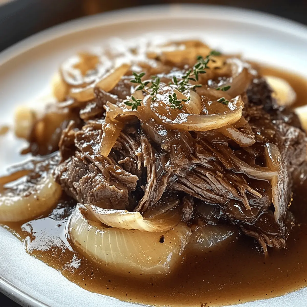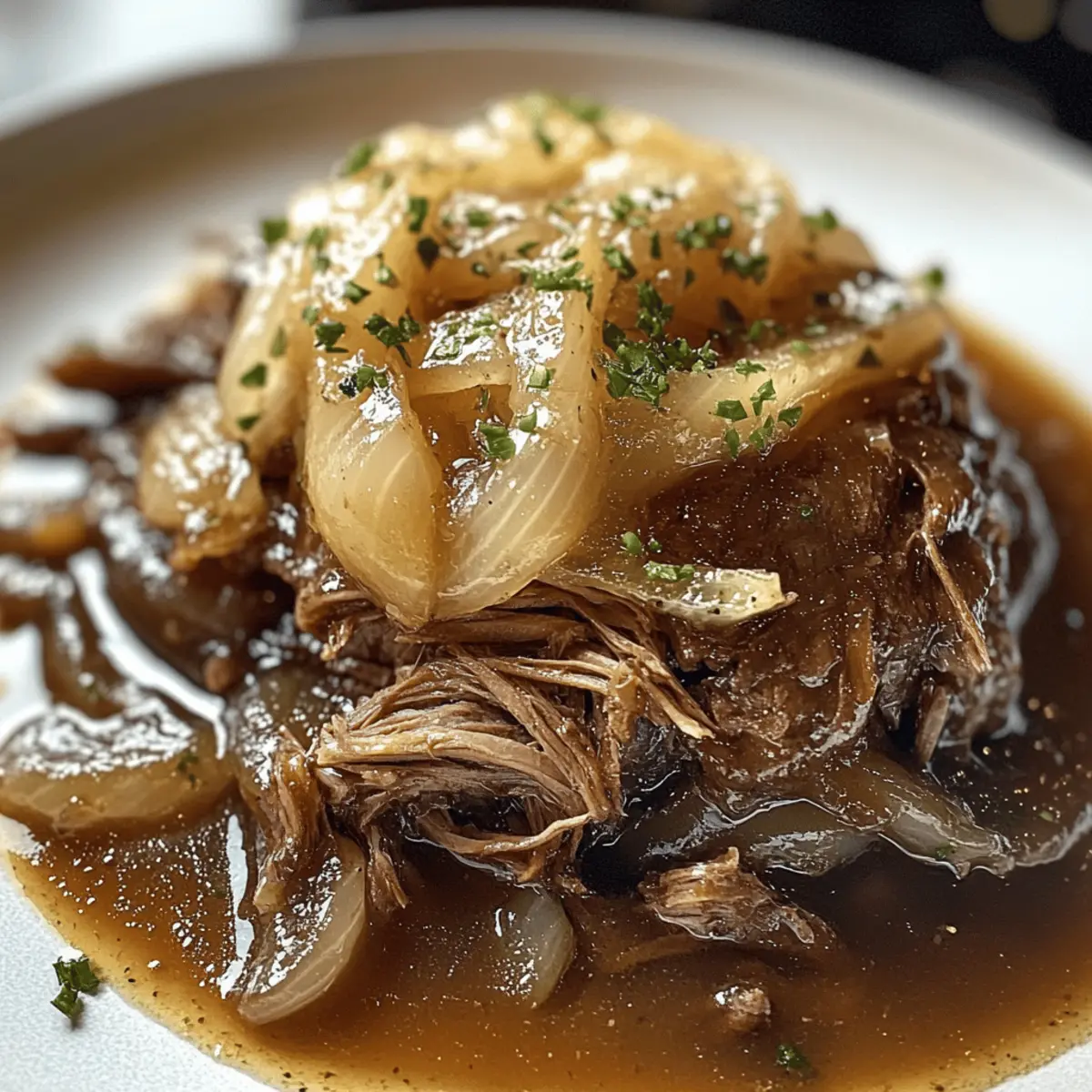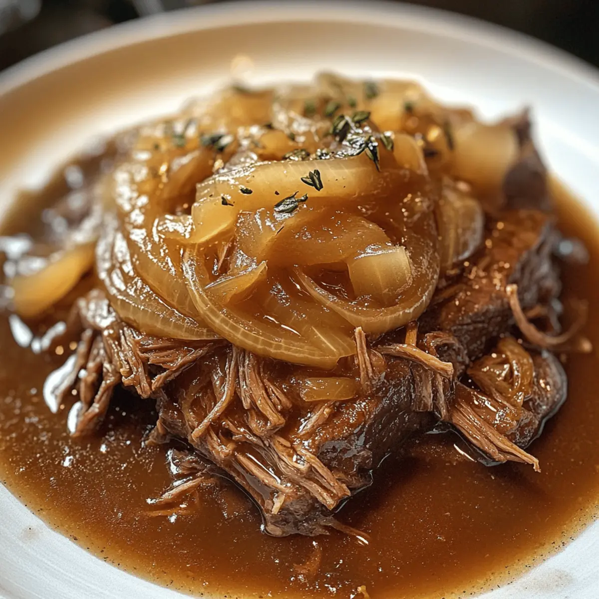 Zwiebel-Rinderbraten ist ein schmackhaftes Gericht mit zartem Rindfleisch und karamellisierten Zwiebeln, ideal für gesellige Anlässe.